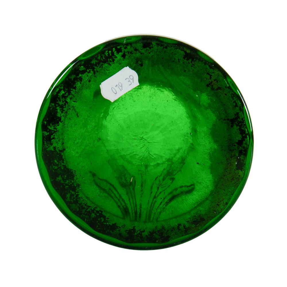 Bohemian Green Glass Trumpet Vase. With gilt & white enamel decoration of swags & flowers. H41cm Estimate $70-140