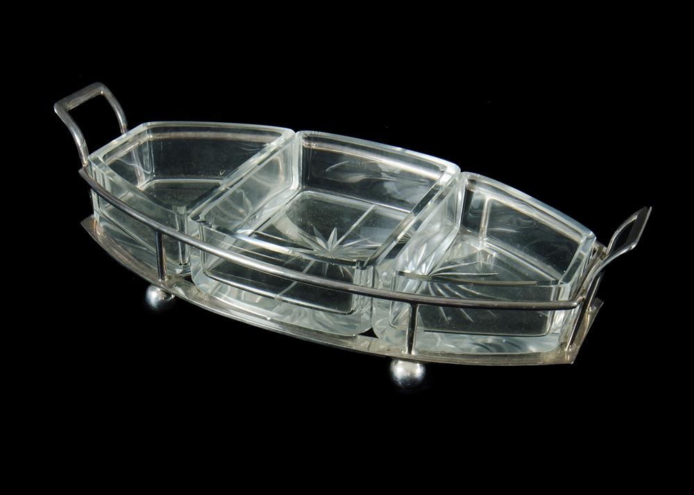 Pr Marples & Co Silver Plate Serving Dishes. With fitted glass inserts. L28cm Estimate $50-100