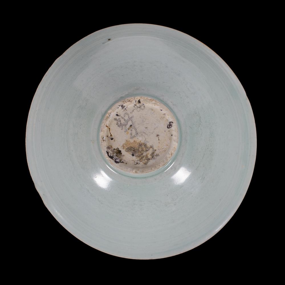 Chinese Qingbai Ware Bowl. Deep, conical bowl with slightly everted rim, raised on a circular foot. Lightly incised decoration to interior. (H6.5cm Dia 18cm) Estimate $150-300