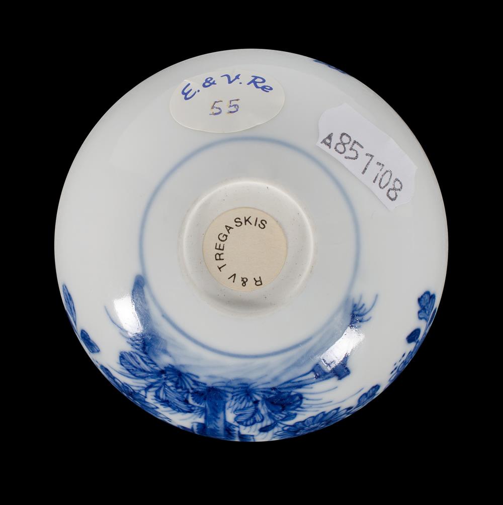 Chinese Soft Paste Scholars Water Pot. Decorated with underglaze blue rock, surrounded by flowers & bamboo. Ex Ray Tregaskis Oriental Art. (H4.5cm Dia 7cm) Estimate $300-500