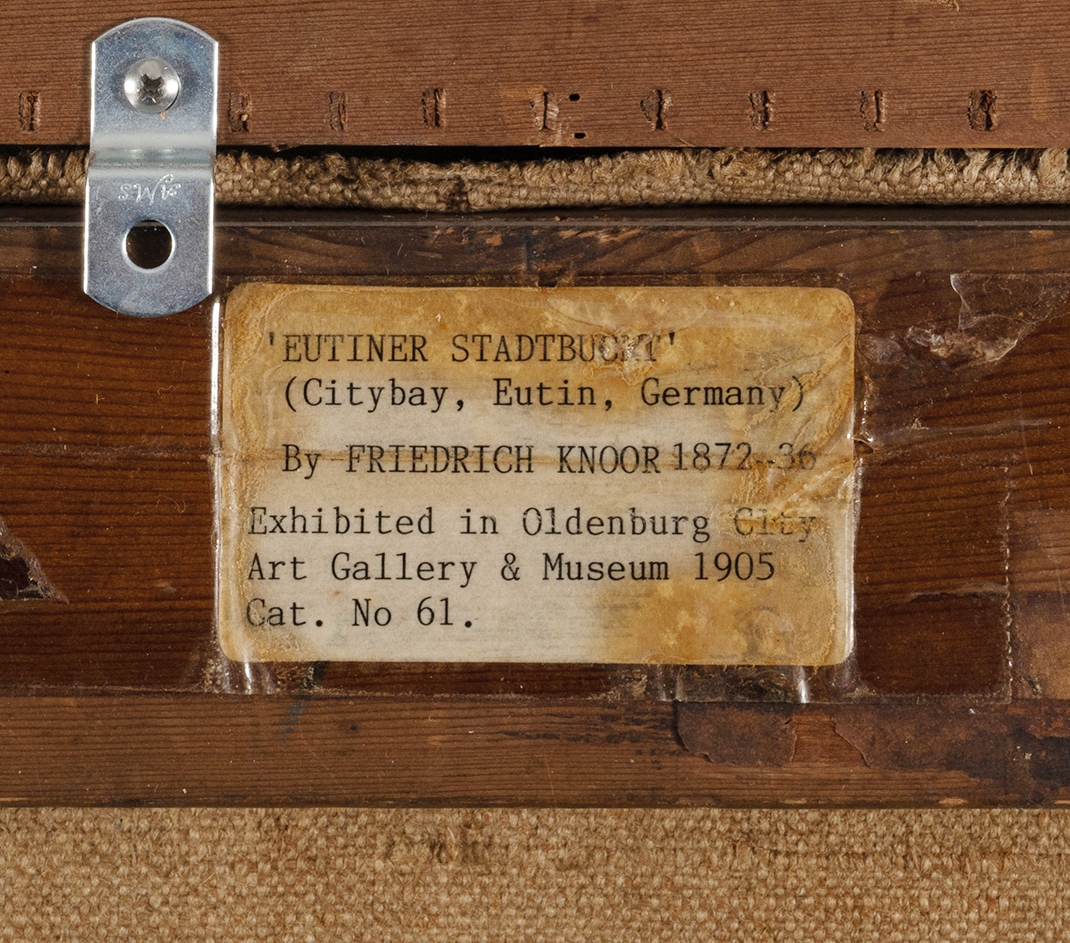 KNORR, Friedrich (German 1872-1936) 'Eutiner Stadtbucht (Eutin City Bay)' circa 1905. Exhibited: 'Nordwestdeutsche Kunstausstellung (Northwest German Art Exhibition),' Oldenburg City Art Gallery & Museum, 1905 - cat #61 (label attached verso). Provenance: Sotheby's, Melbourne, 19th April 1993 (lot 167); Bonhams, Sydney, 10th June 2020 (lot 54). Oil on Linen 52x71.5cmEstimate $800-1,500