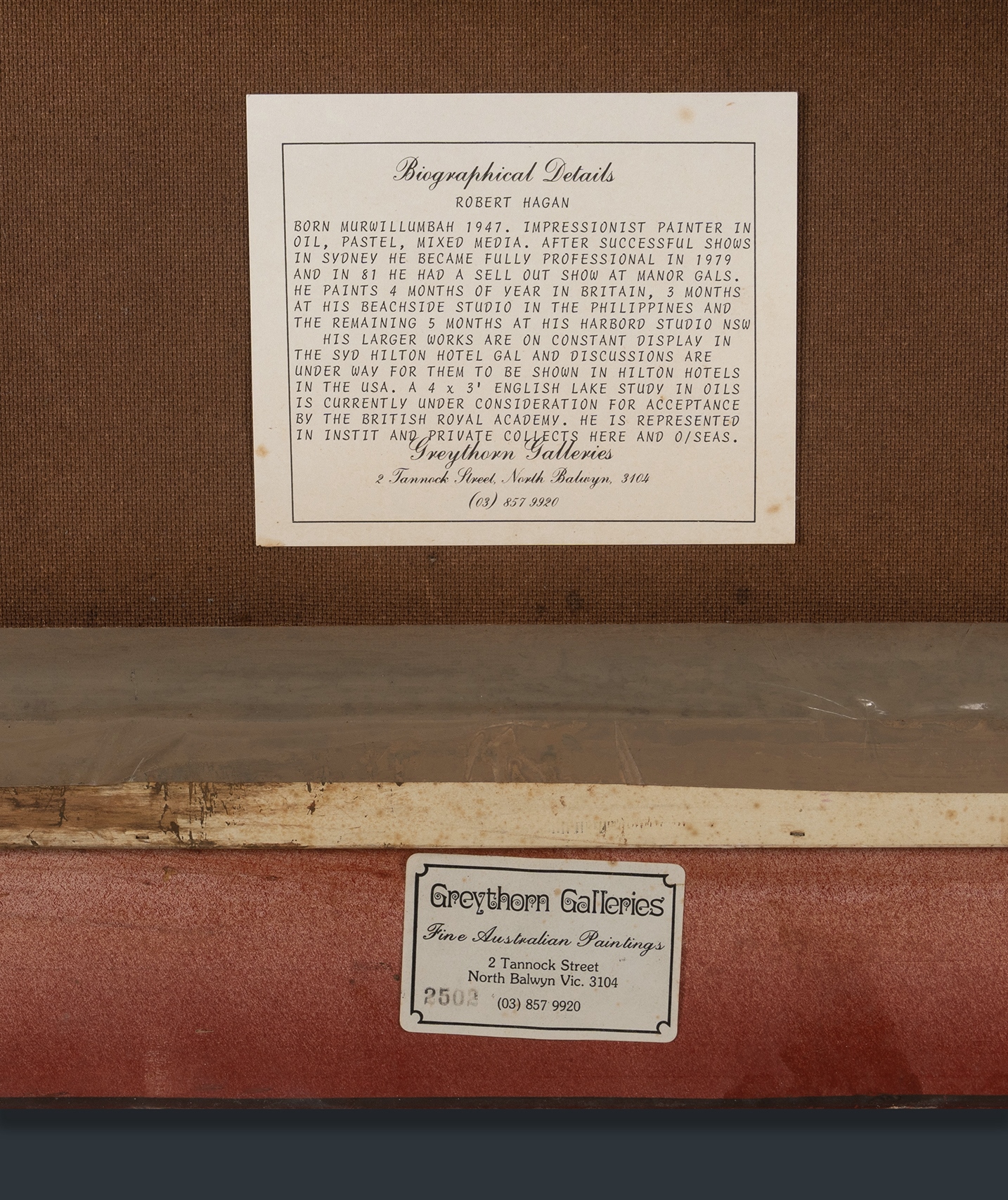 HAGAN, Robert (b.1947) 'Egrets Haven' Greythorn Galleries, Melbourne. label verso. Oil on Canvas on Board 90x121cmEstimate $600-1,000