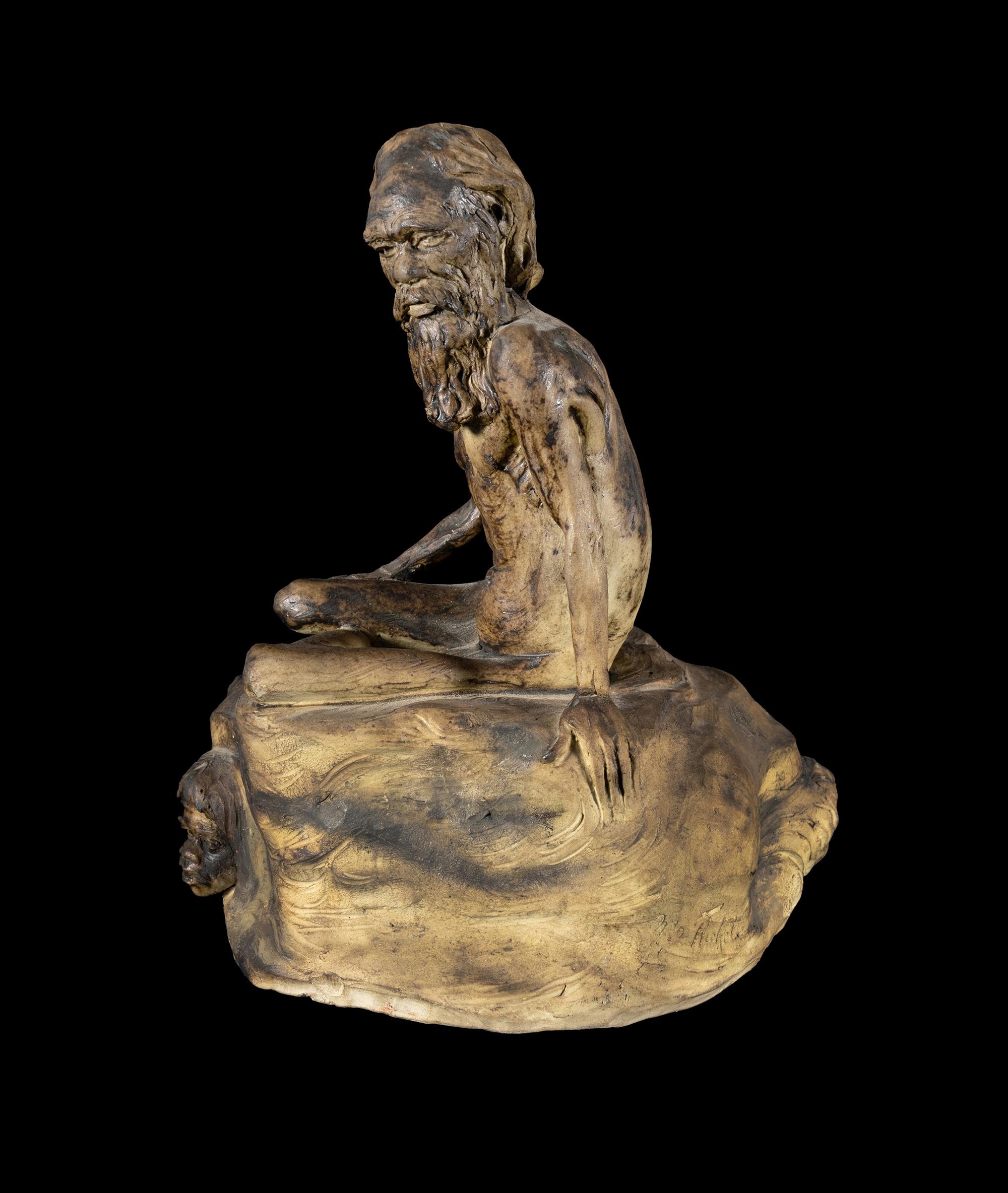 RICKETTS, William (1899-1993) Aboriginal Elder - modelled seated on a rock. Incised signature verso. Restorations (possibly to original firing cracks). Clay Sculpture H29.5cm PROVENANCE: Private collection, Sydney.Estimate $300-500