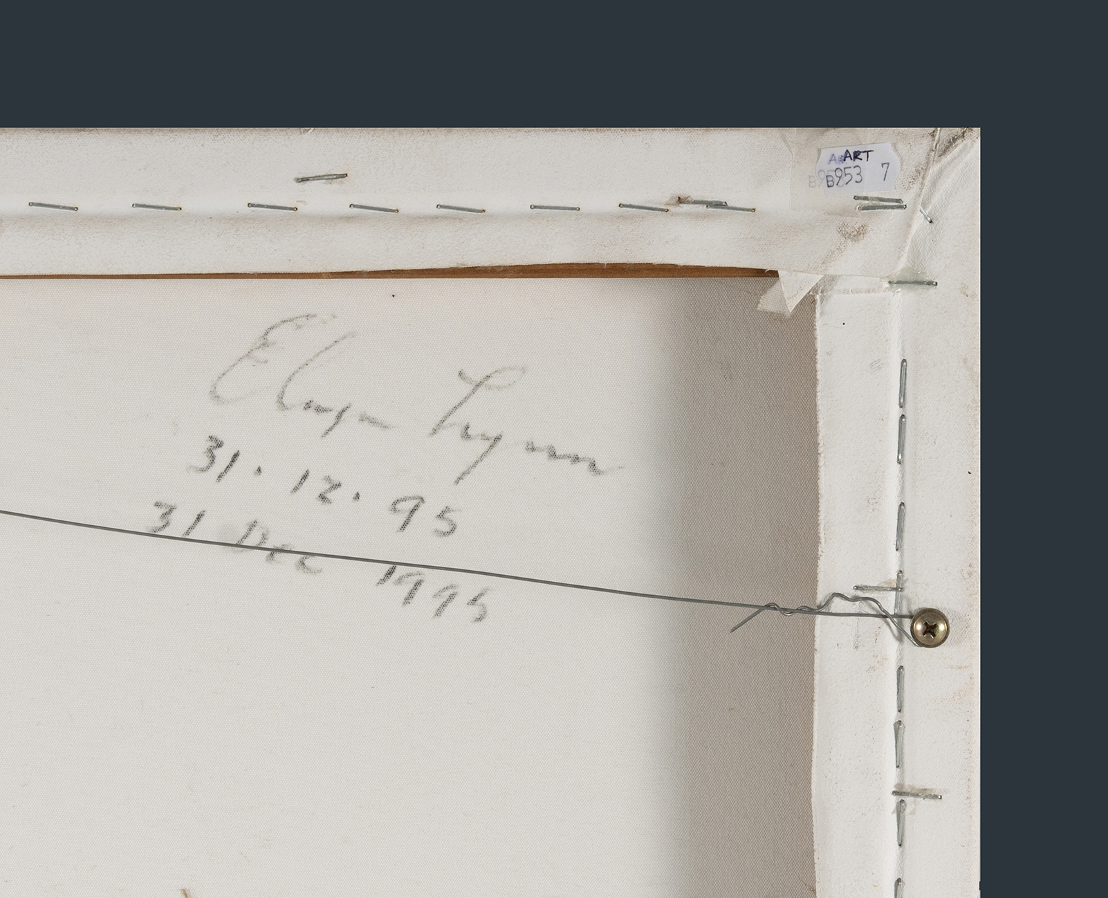 LYNN, Elwyn Augustus (1917-1997) 'Package,' 1995. Signed, titled and dated verso. Mixed Media on Canvas 60x72cmEstimate $800-1,500