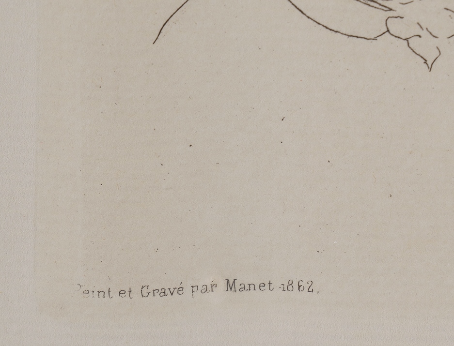MANET, Edouard (French 1832-1883) 'Profile Portrait of Charles Baudelaire' Monogrammed in plate. Printed text lower edge: 'Peint et Grave par Manet 1862. Imp. A[lfred] Salmon.' Etching (2nd state) 11x9cm (plate)Estimate $200-400