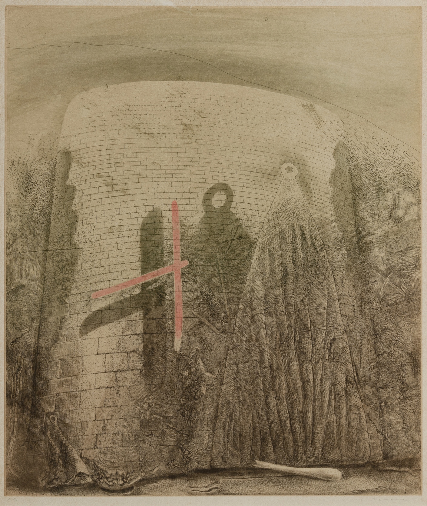 HEREL, Petr (Czech/Australian b.1943) (2) 'Curtain of the Absolute (from The Cancellation series),' 1973-2003 (62x45cm plate); & 'Last Belfry,' 1992, A/P (55.5x47cm plate). Etching & AquatintEstimate $180-350