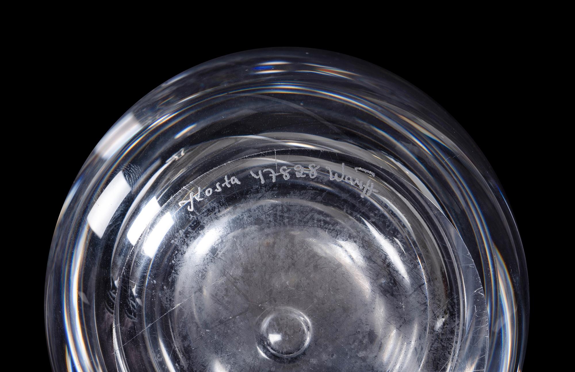 Göran WARFF Kosta Glass Specimen Vase. Squat bulbose vase in clear glass. Engraved signature to base. (H14cm)Estimate $50-100
