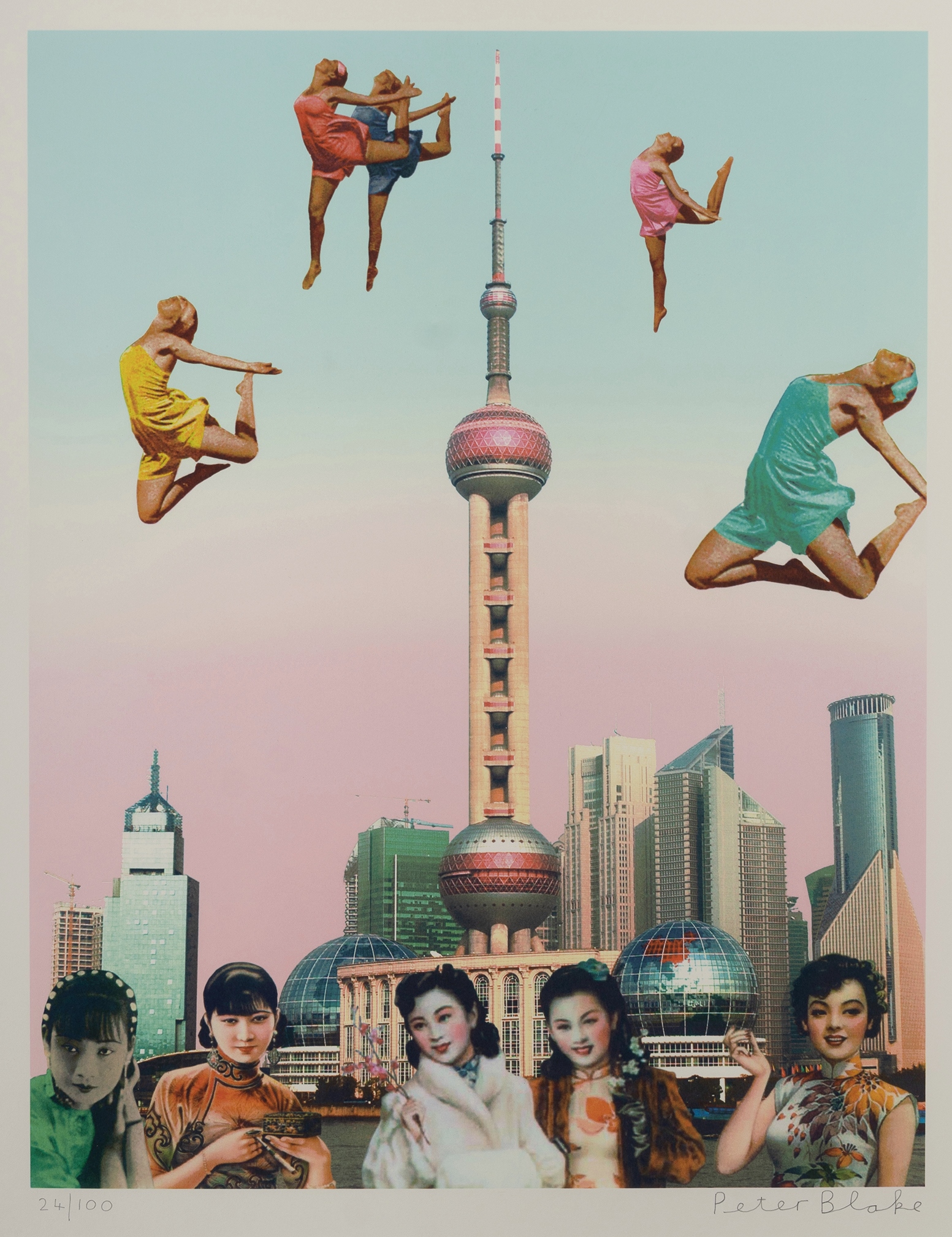 BLAKE, Peter (British b.1932) (3) 'The Far East Suite,' 2013. 'Dancing Over Shanghai;' 'The Convention of Comic Book Characters Comes to Hong Kong;' & 'The Butterfly Man at Raffles Hotel.' S/Print (3) 24/100 65.5x50cm (image) 82x65cm (sheet) (each) Estimate $500-800