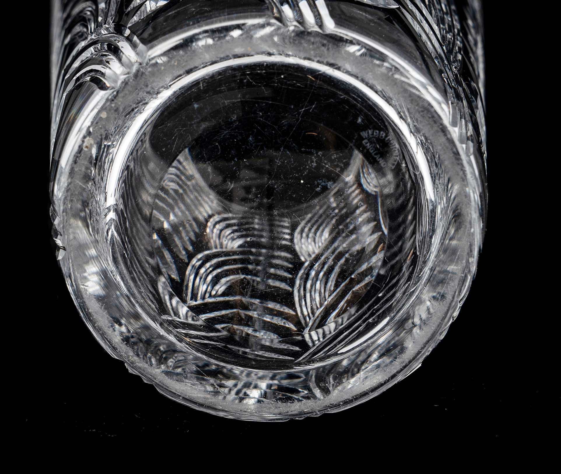 Large Webb Corbett Crystal Vase Deep cut design, possibly by Irene Stevens. (H28cm) Provenance: Deceased Estate, Sydney.Estimate $80-150