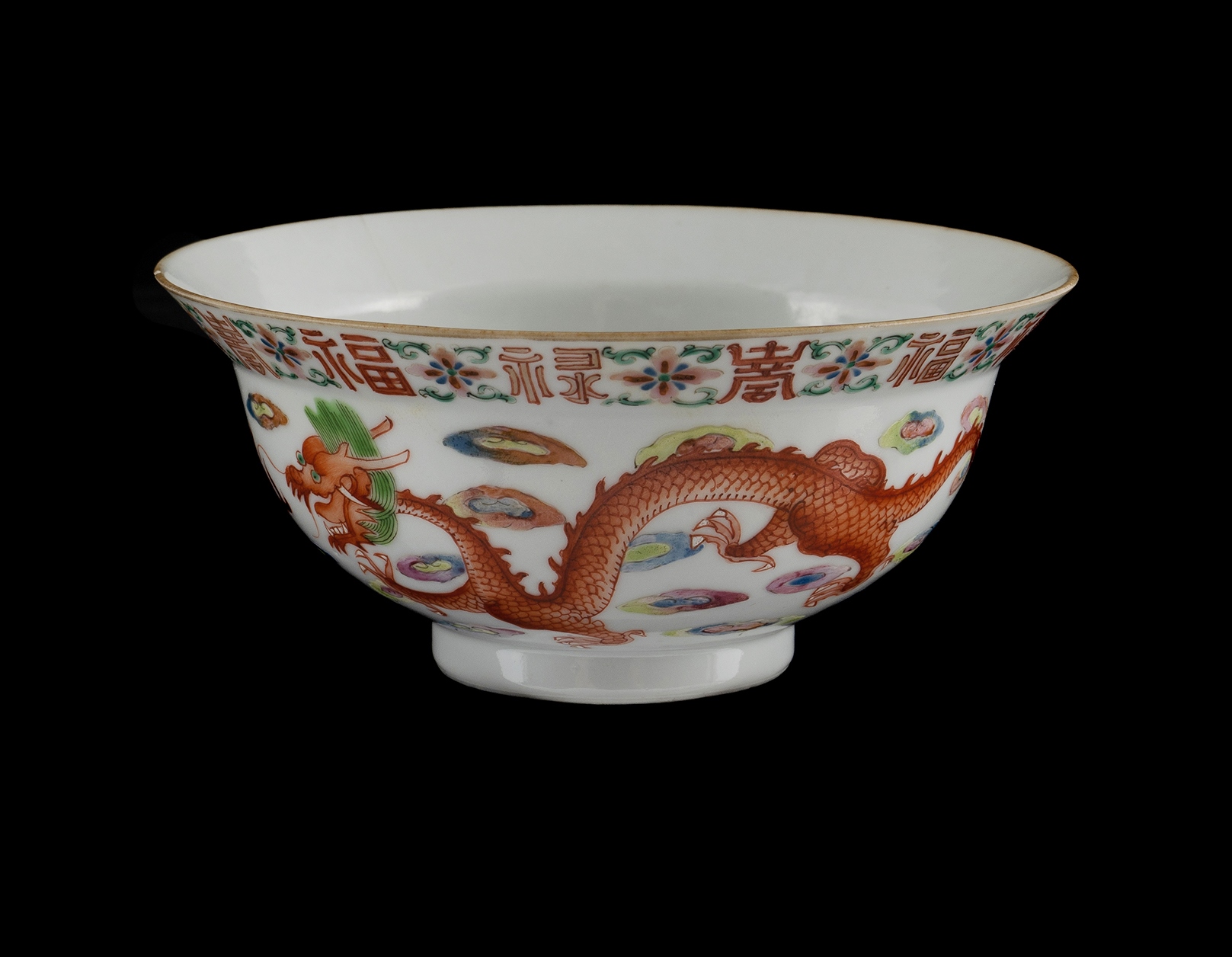 Three Chinese Late Qing Dynasty Famille Rose Bowls Daoguang four-character seal marks in overglaze red. A/F, two with rim chip, one with short hairline to rim. D14cm (each)Estimate $80-120
