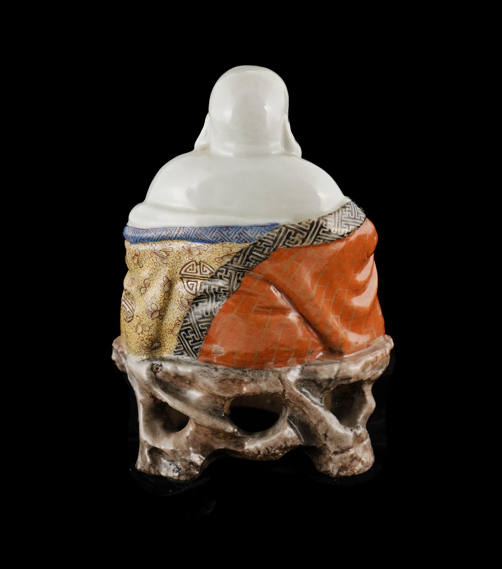 Chinese Famille Rose Buddha Budai, Late Qing or Republic Period Finely enamelled, A/F chipped lower front left. (H12.5cm)Estimate $200-300