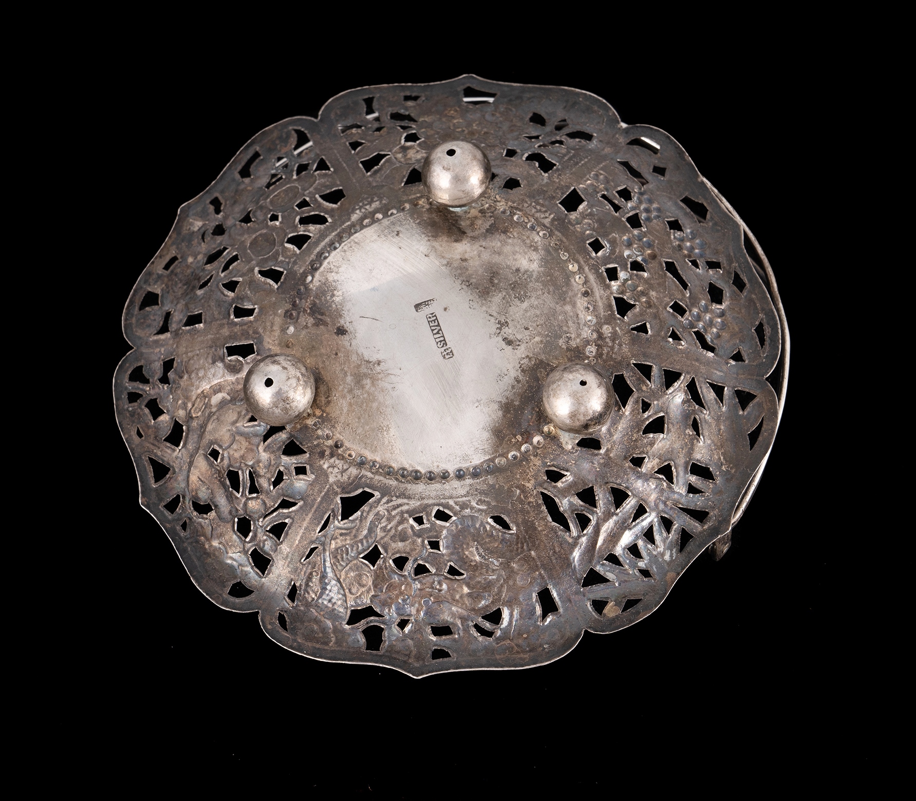 Chinese Silver Small Basket with Dragons Hallmarked 'Silver' with two other character marks. D13cm, W117g Estimate $100-150