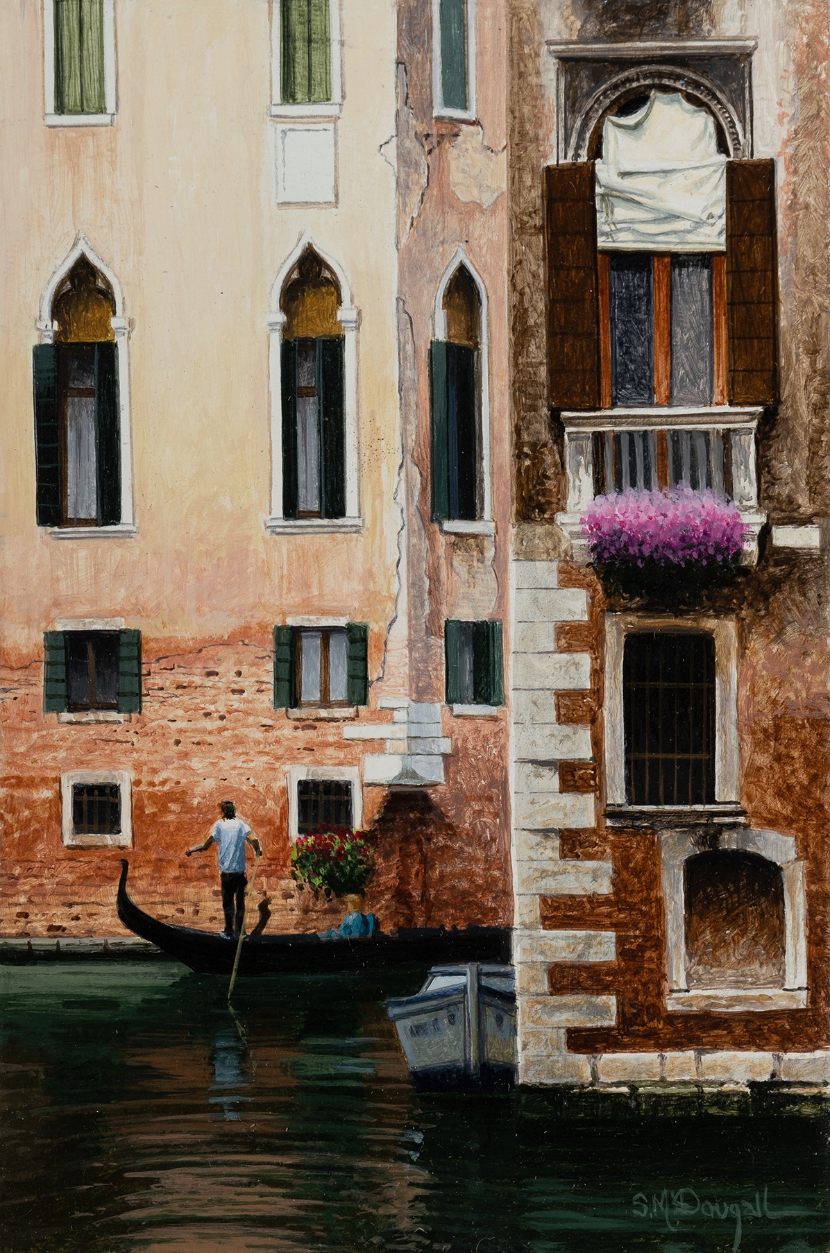 McDOUGALL, Scott (b.1953) (3) 'Spring Flowers - Venice,' 'Grand Canal - Venice,' & 'In the Shadows - Venice.' Oil on Board (3) 15x10cm (each) PROVENANCE: Estate of the Late Ian Cameron, Sydney.Estimate $300-500