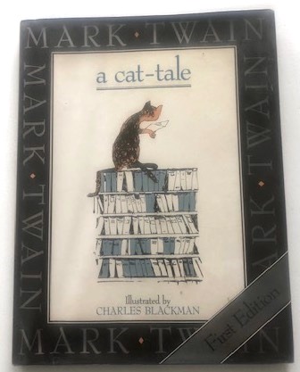 BLACKMAN, Charles (1928-2018) 'Black Cat Face III,' c.1986. Illustrated in Mark Twain's 'A Cat-Tale,' Ashton Scholastic, Australia, 1987. Book included. Wagner Art Gallery, Sydney, label verso. Ink 34.5x26.5cm (sight)Estimate $1,000-2,000