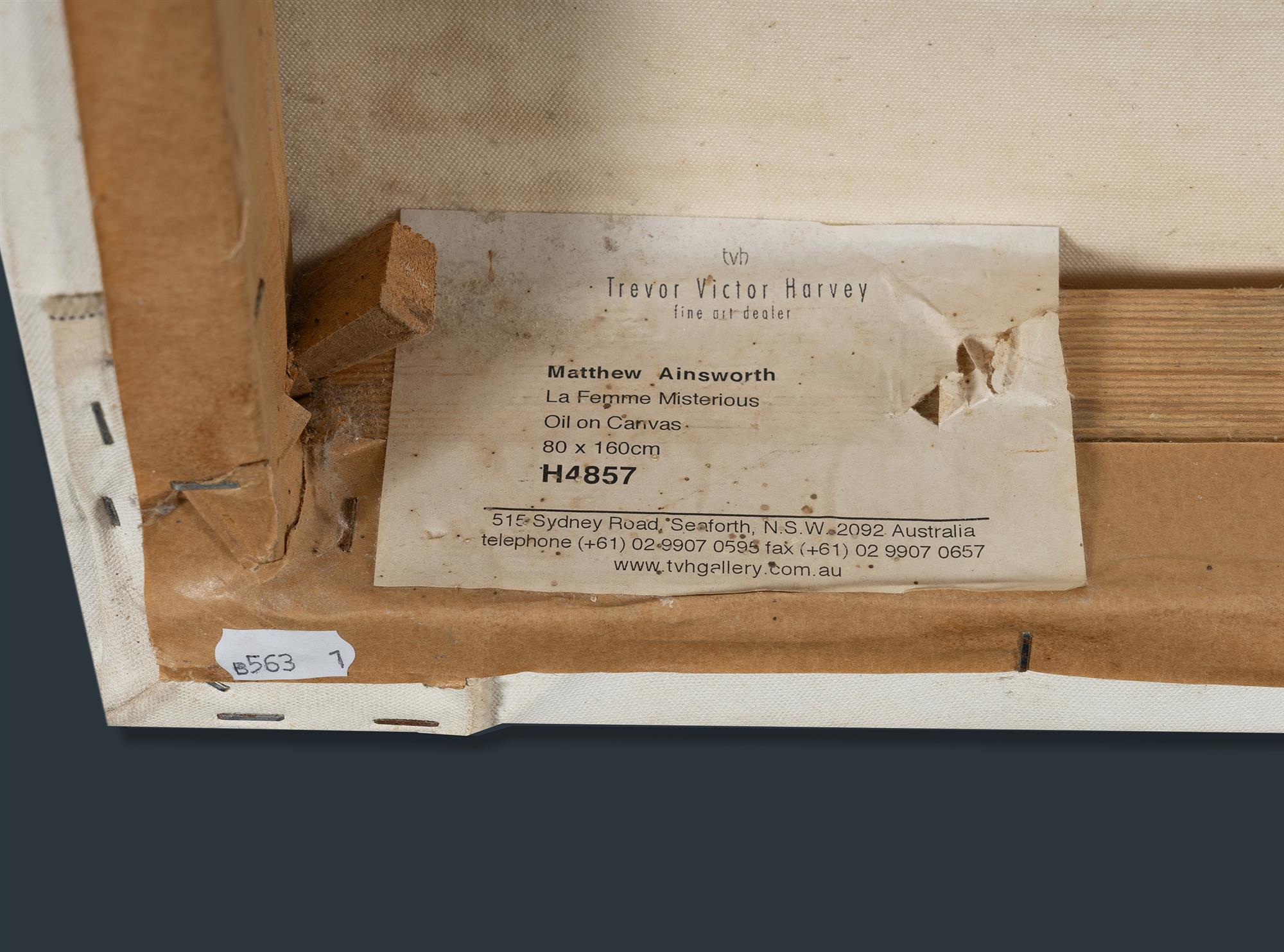 AINSWORTH, Matthew (b.1969) 'La Femme Mysterious' Trevor Victor Harvey, Seaforth, NSW, gallery label verso (#H4857). Oil on Canvas 80x160cmEstimate $300-600