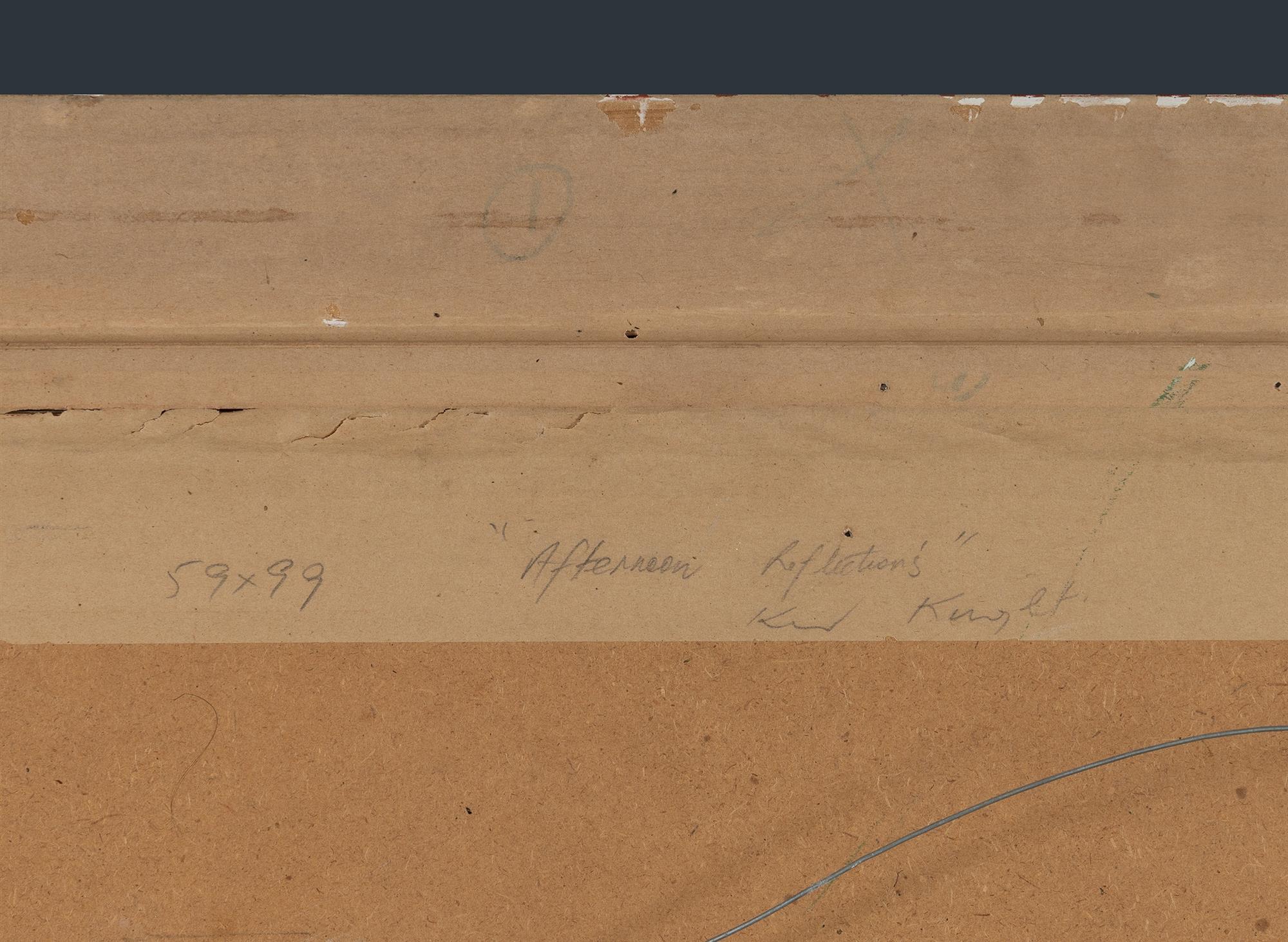 KNIGHT, Ken (b.1956) 'Afternoon Reflections [Middle Harbour, Sydney]' Titled verso, with additional signature. Oil on Board 58.5x98.5cmEstimate $3,500-5,500