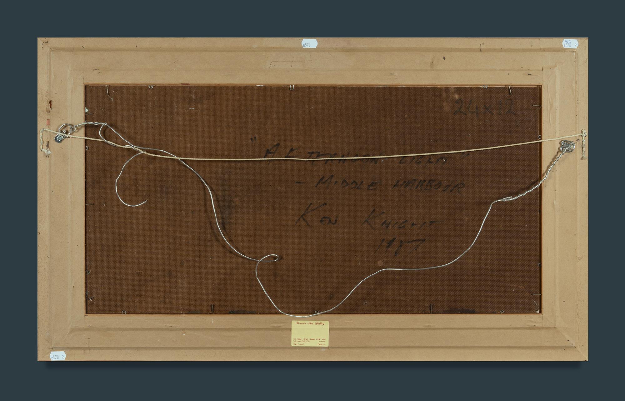 KNIGHT, Ken (b.1956) 'Afternoon Light - Middle Harbour,' 1987. Titled verso, with additional signature & date. Oil on Board 29.5x60cmEstimate $800-1,500