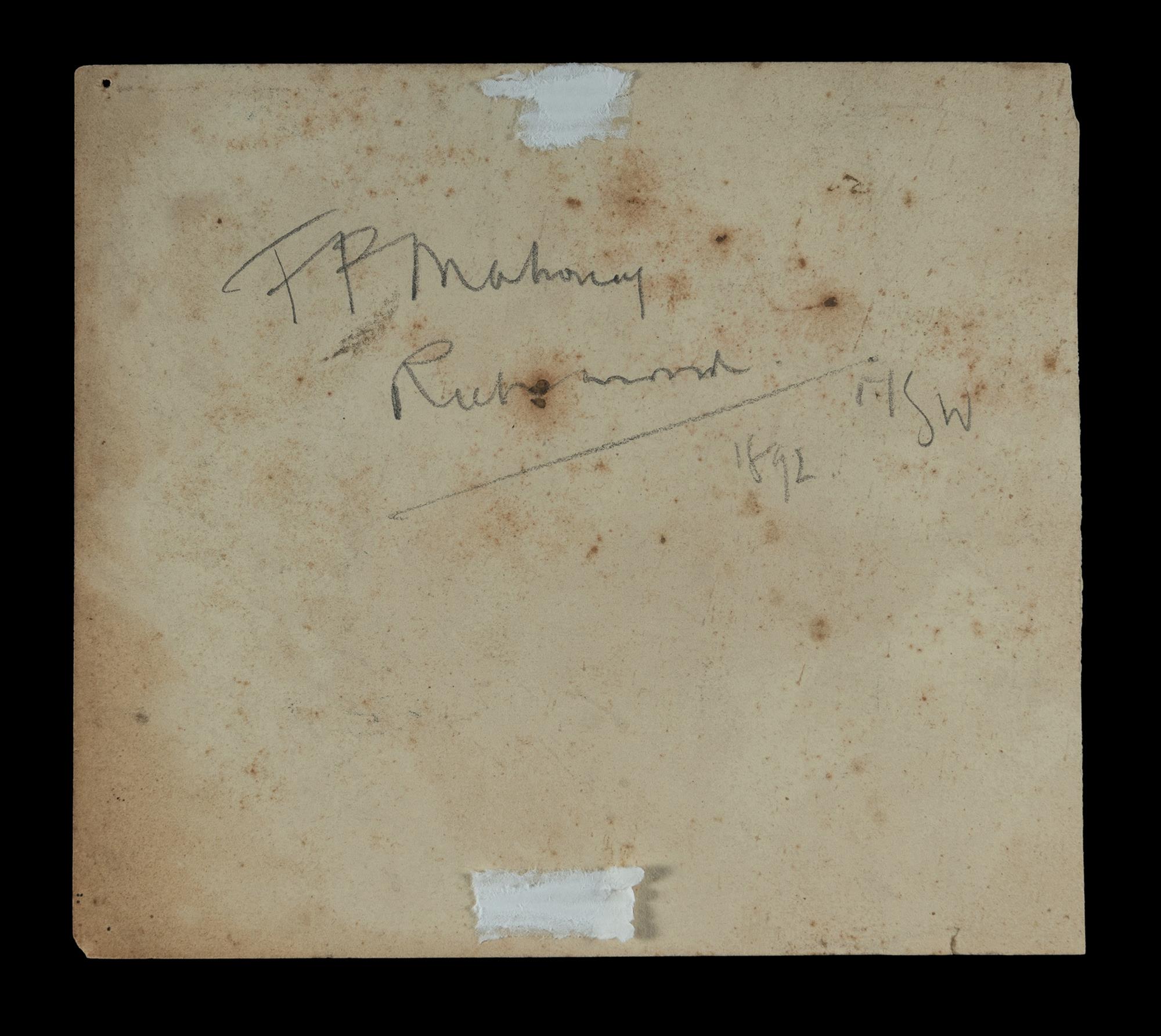 MAHONY, Frank (1862-1916) '[Sketching] Richmond, NSW,' 1892. Signed and inscribed verso. W/Clr with White Highlights 17x19cm PROVENANCE: Fundraising exhibition, Royal Art Society of NSW, Sydney c.1998.Estimate $80-150