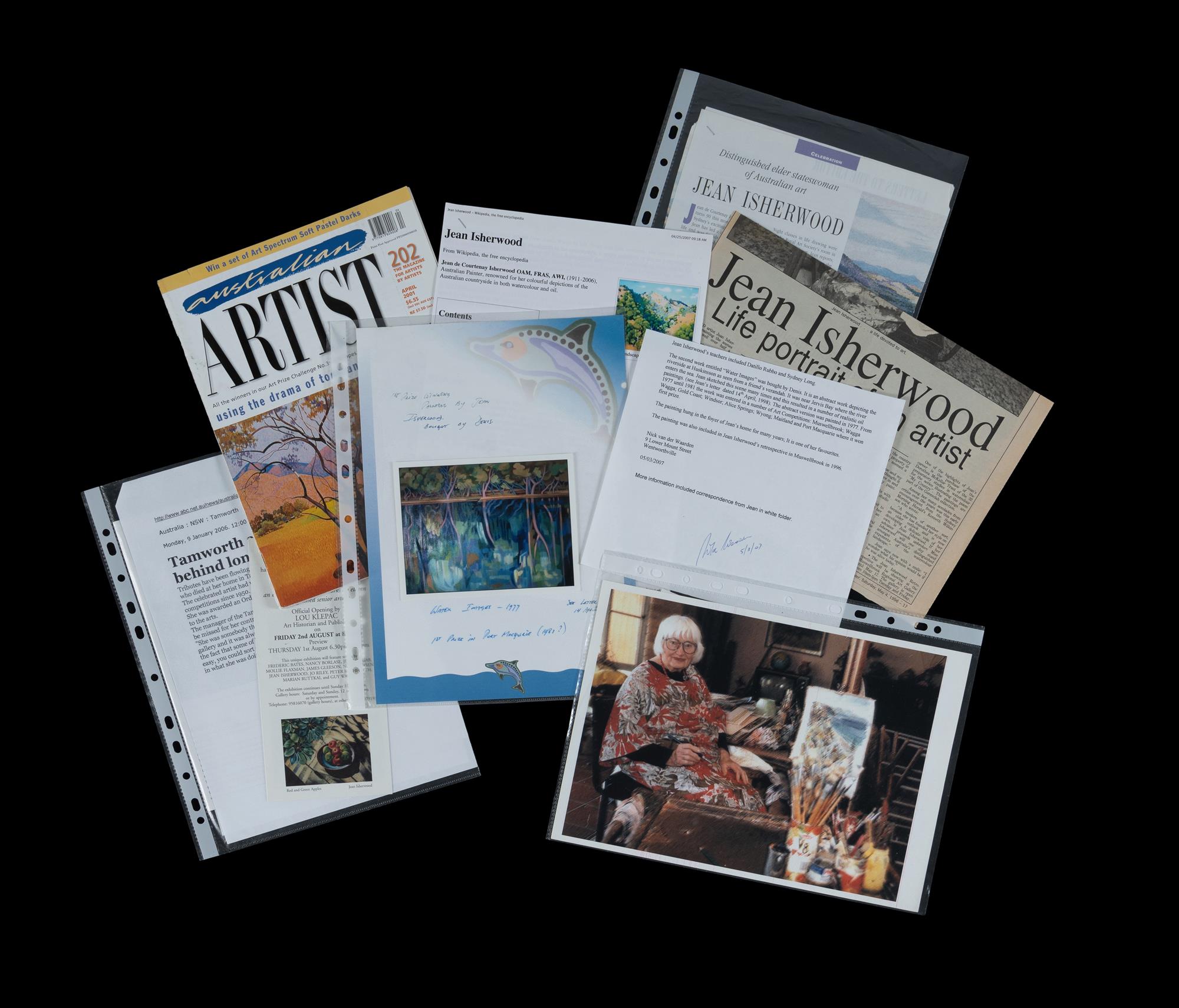 ISHERWOOD, Jean (1911-2006) 'Water Images,' 1977. Remnants of label verso for Maitland Prize 1981. Accompanied by a folder with documentation and research material relating to the painting, artist. Oil on Canvas on Board 90x121cm Estimate $1,000-3,000