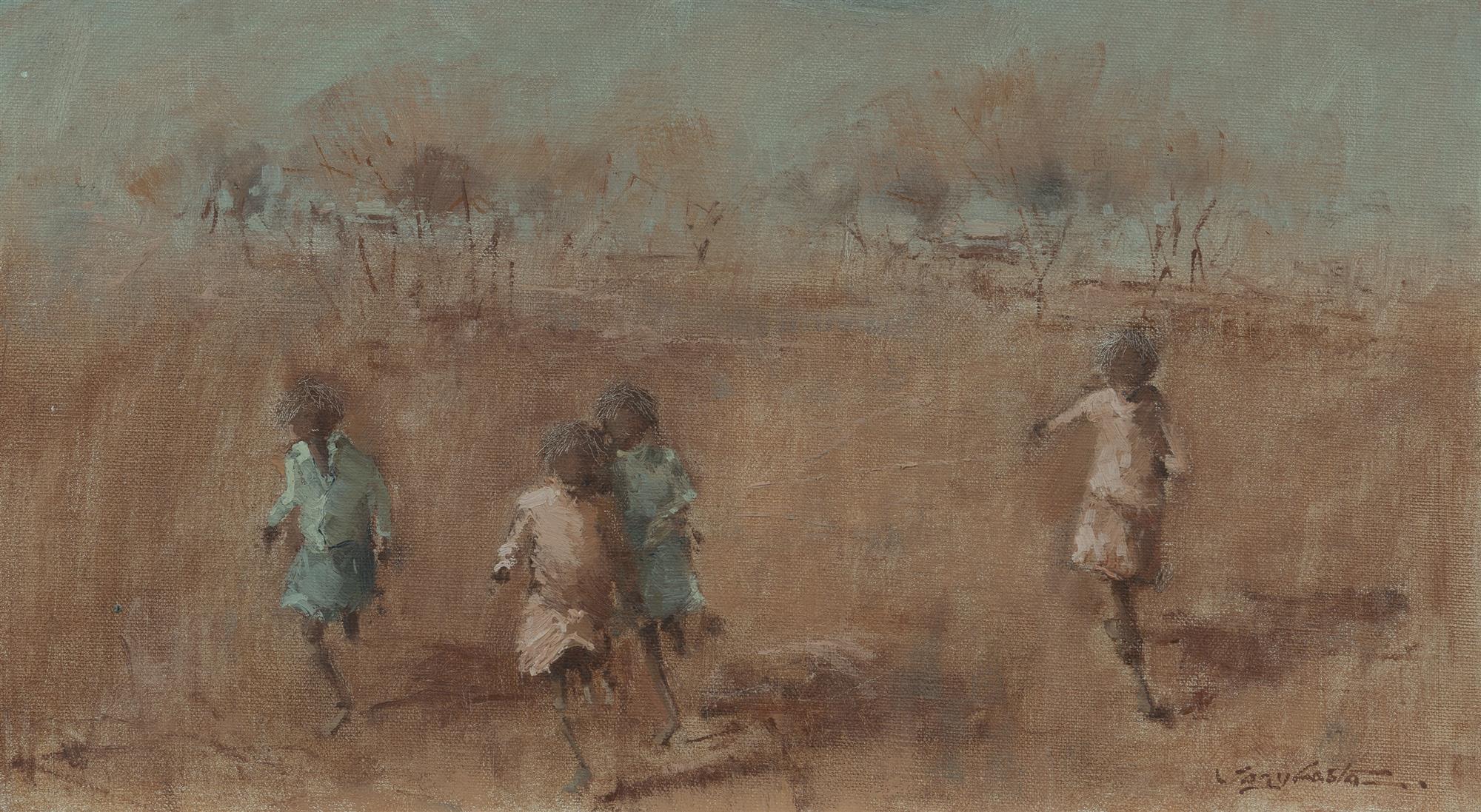 COSTA, Tony (b.1955) (2) Children Running (25x45.5cm); and Portrait of Man (24.5x14.5cm) Oil on Canvas on Board (2)Estimate $200-400