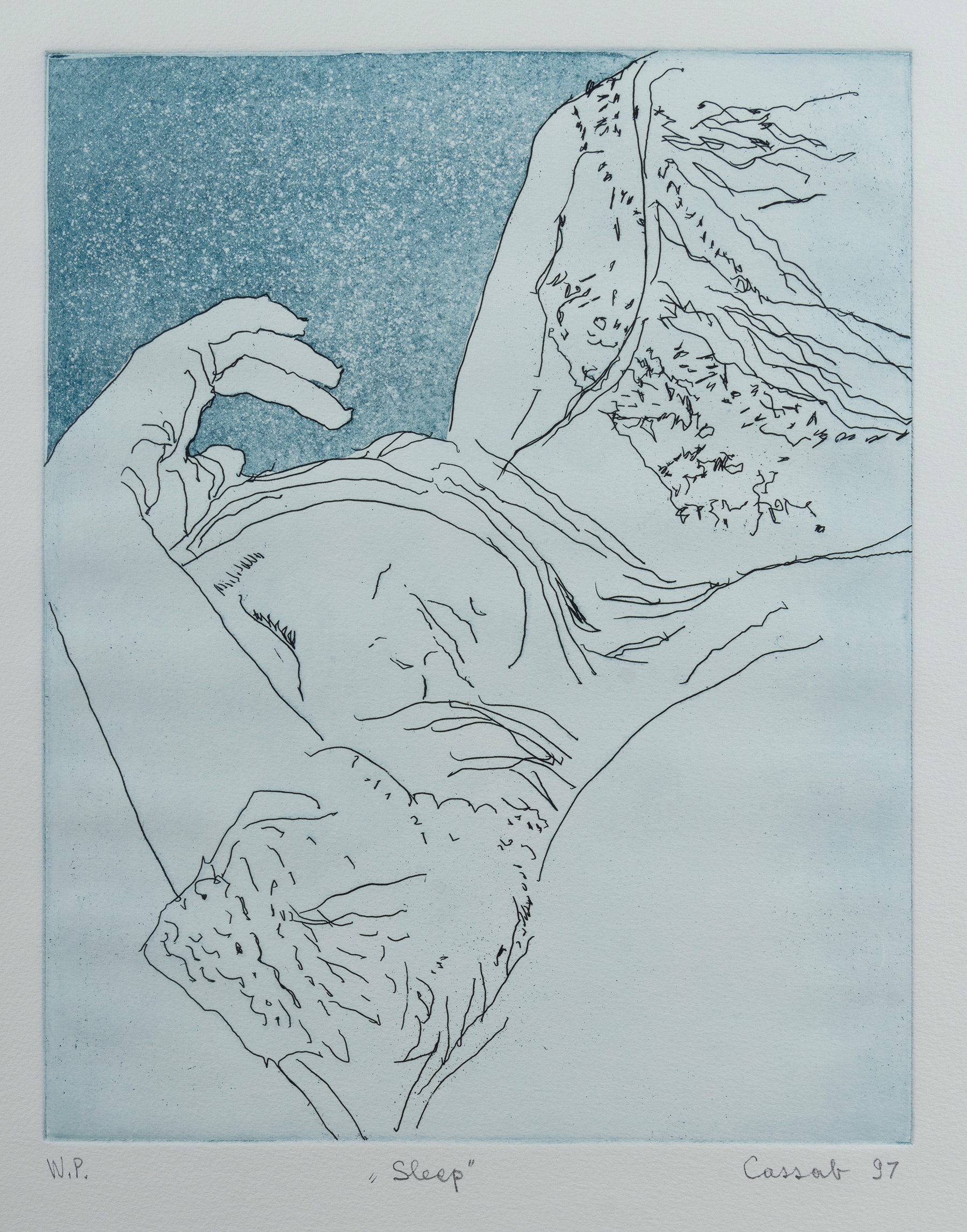 CASSAB, Judy (1920-2015) (2) 'Sleep,' 1997. Original Zinc Etching Plate & Original Etching W.P. (2) 32x25cm (plate) 57x50cm (sheet)