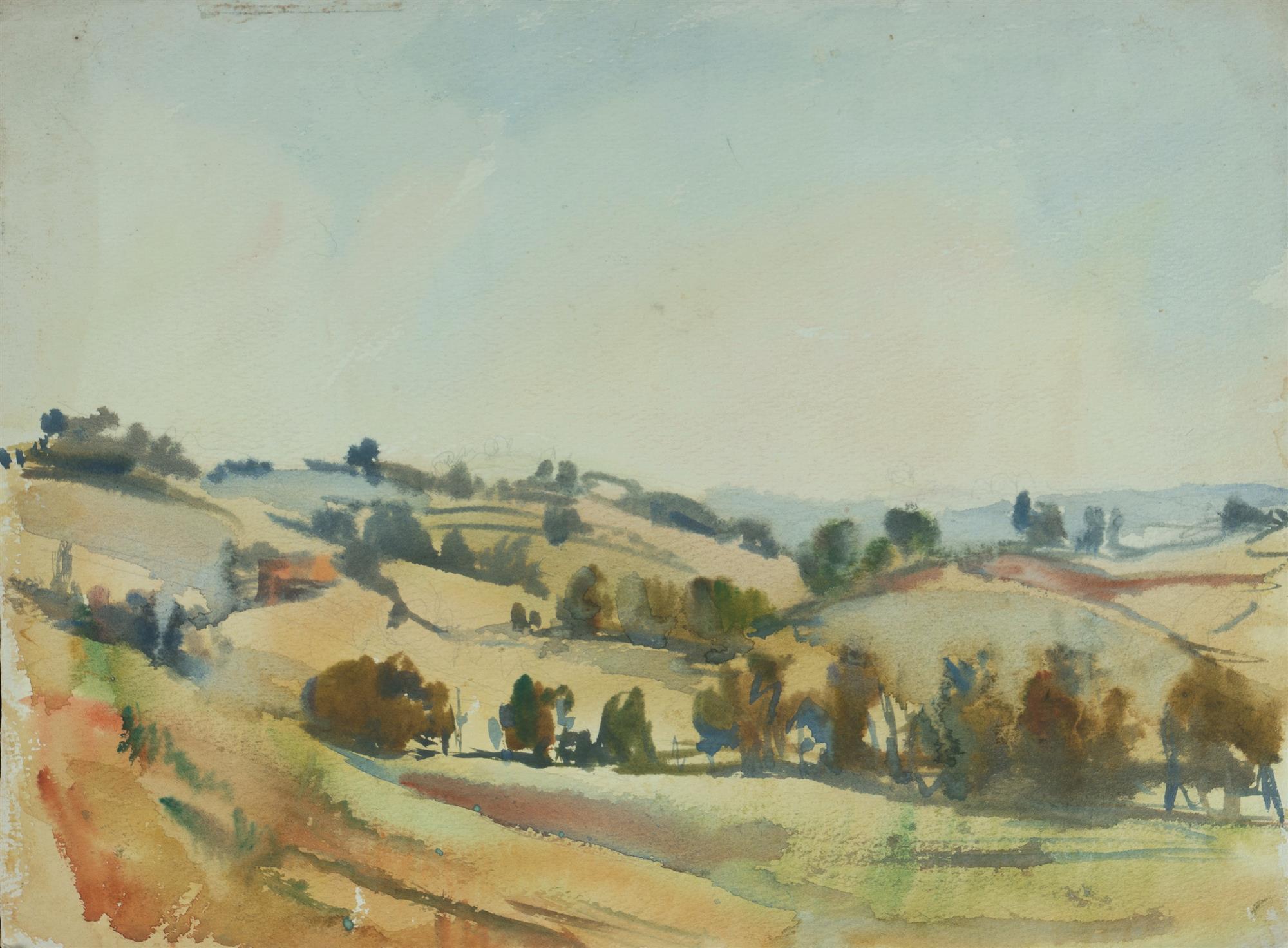 COGHLAN, Elaine (1897-1989) Bayview near Mona Vale,' (25.5x40cm);' N.S.W. Landscape (unsigned - 29x39cm); & Country Farm (unsigned - 25.5x28cm). W/Clr (3) PROVENANCE: Belinda Foy, great niece of the artist.Estimate $200-400