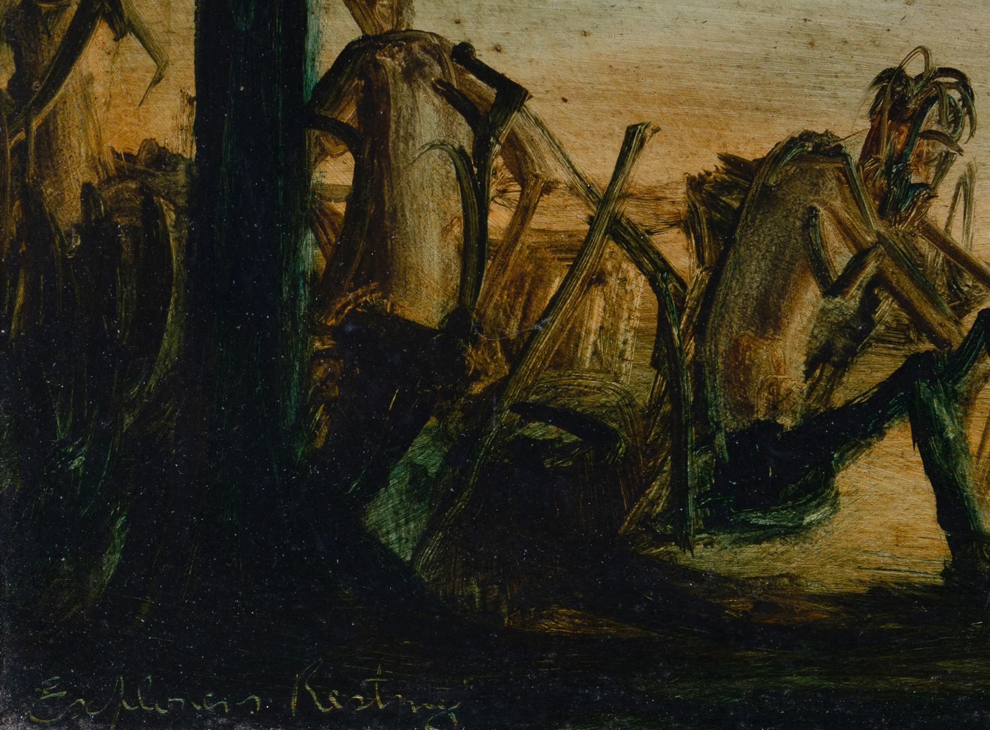 HART, Pro (1928-2006) 'Explorers Resting' Oil on Board 34x52cm PROVENANCE: Bonhams & Goodman, Sydney, 24th November 2004 (lot 2083).Estimate $4,000-6,000