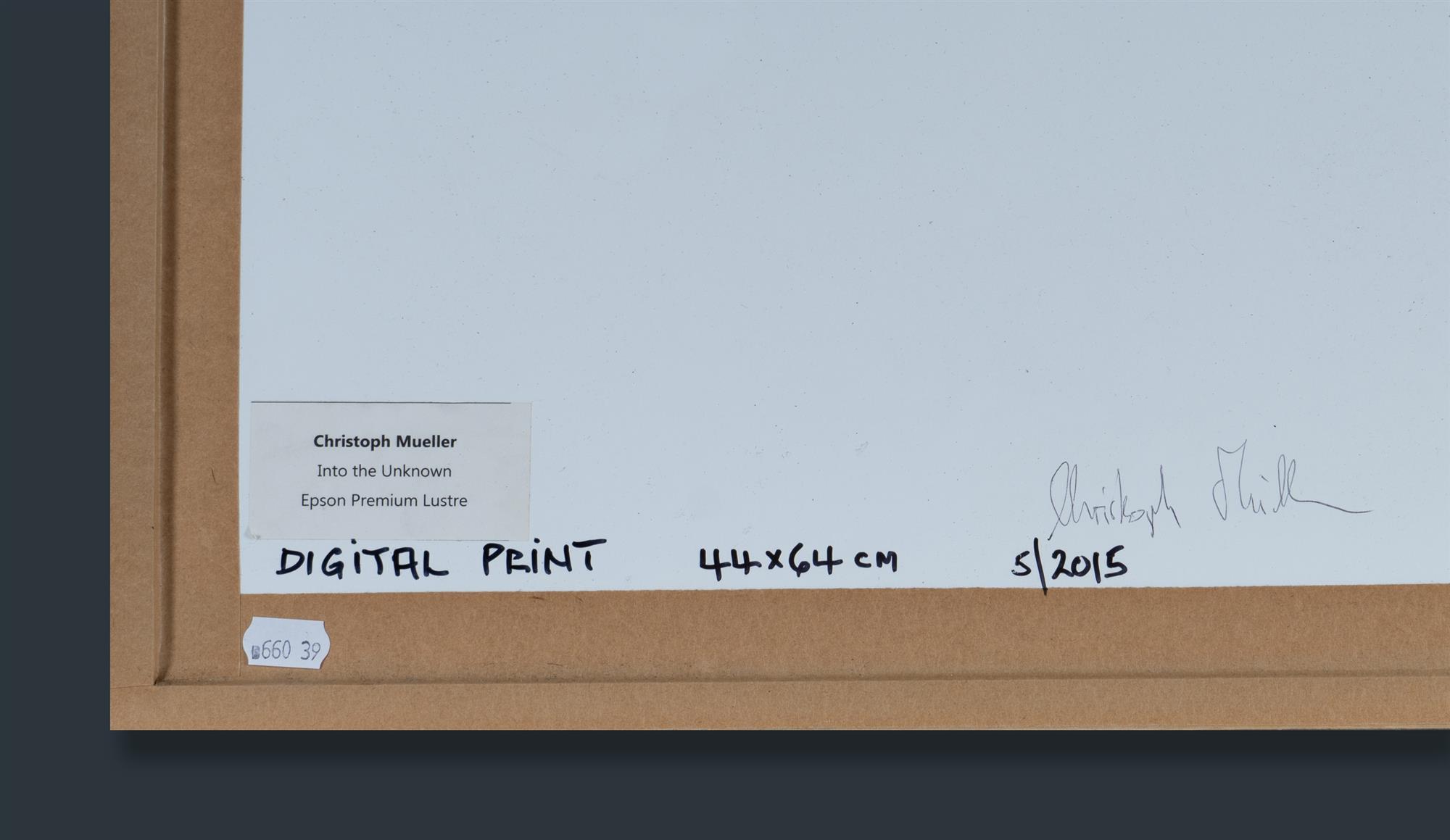 Two Black and White Photographs. John BARDELL, 'The Tower,' 2012, 39.5x35cm (image), unsigned; Christoph MUELLER, 'Into the Unknown,' 2015, 54x28cm (image), signed verso. PROVENANCE: The Niland Collection, Sydney.Estimate $80-150
