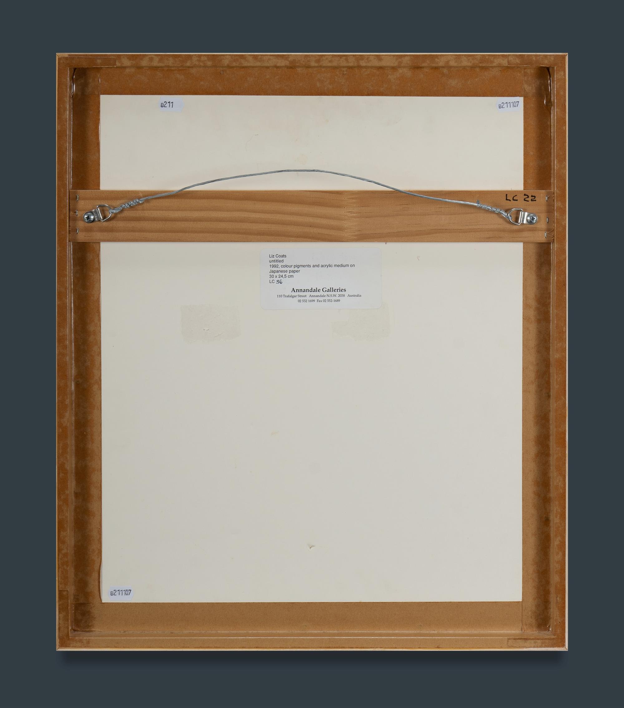 COATS, Elizabeth (Liz) (New Zealand/Australia b.1946) Untitled, 1992/3. Annandale Galleries, Sydney, label verso. Colour Pigments & Acrylic Medium on Japanese Paper 30.5x24.5cmEstimate $200-400