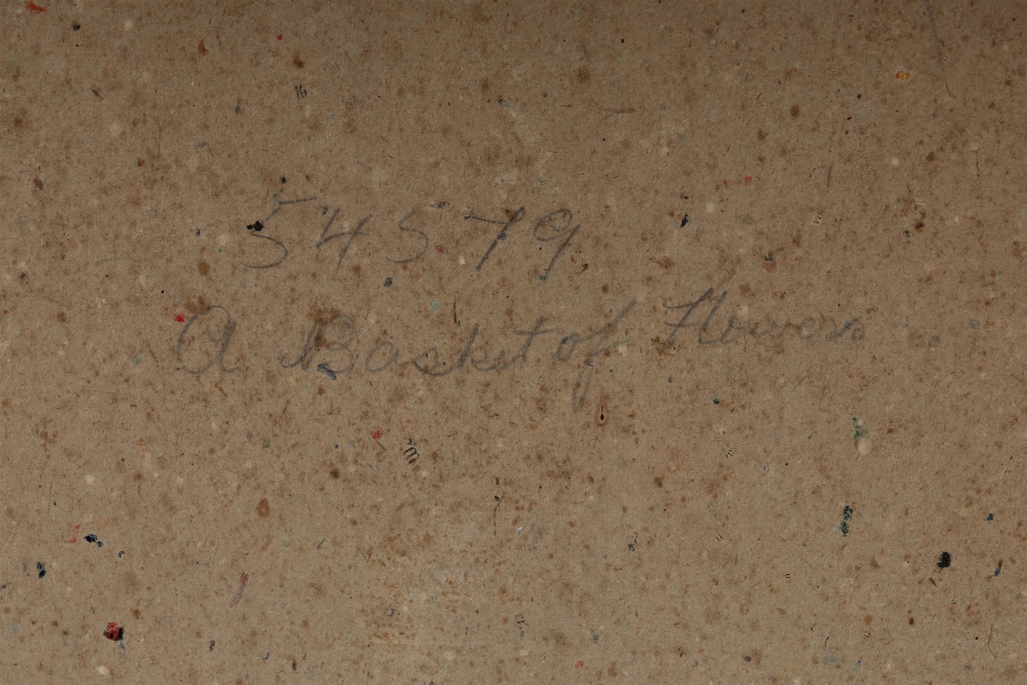 SHERWOOD, Maud (New Zealand 1880-1956) 'A Basket of Flowers' Original S.A. Parker Ltd label verso. W/Clr 32x39.5cmEstimate $400-700