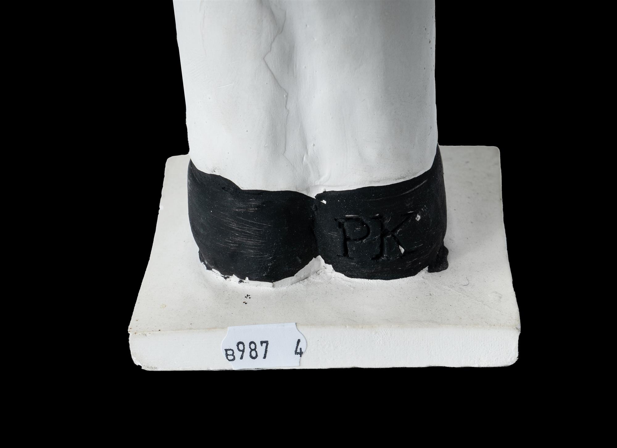 KINGSTON, Peter (1943-2022) Boofhead Initialled 'P.K.' and pencil inscription to base 'No 1 for Sal & Dior'. Together with a Peter Kingston designed card for Martin Sharp's memorial, 2013 Painted Plaster (H33cm)Estimate $800-1,200