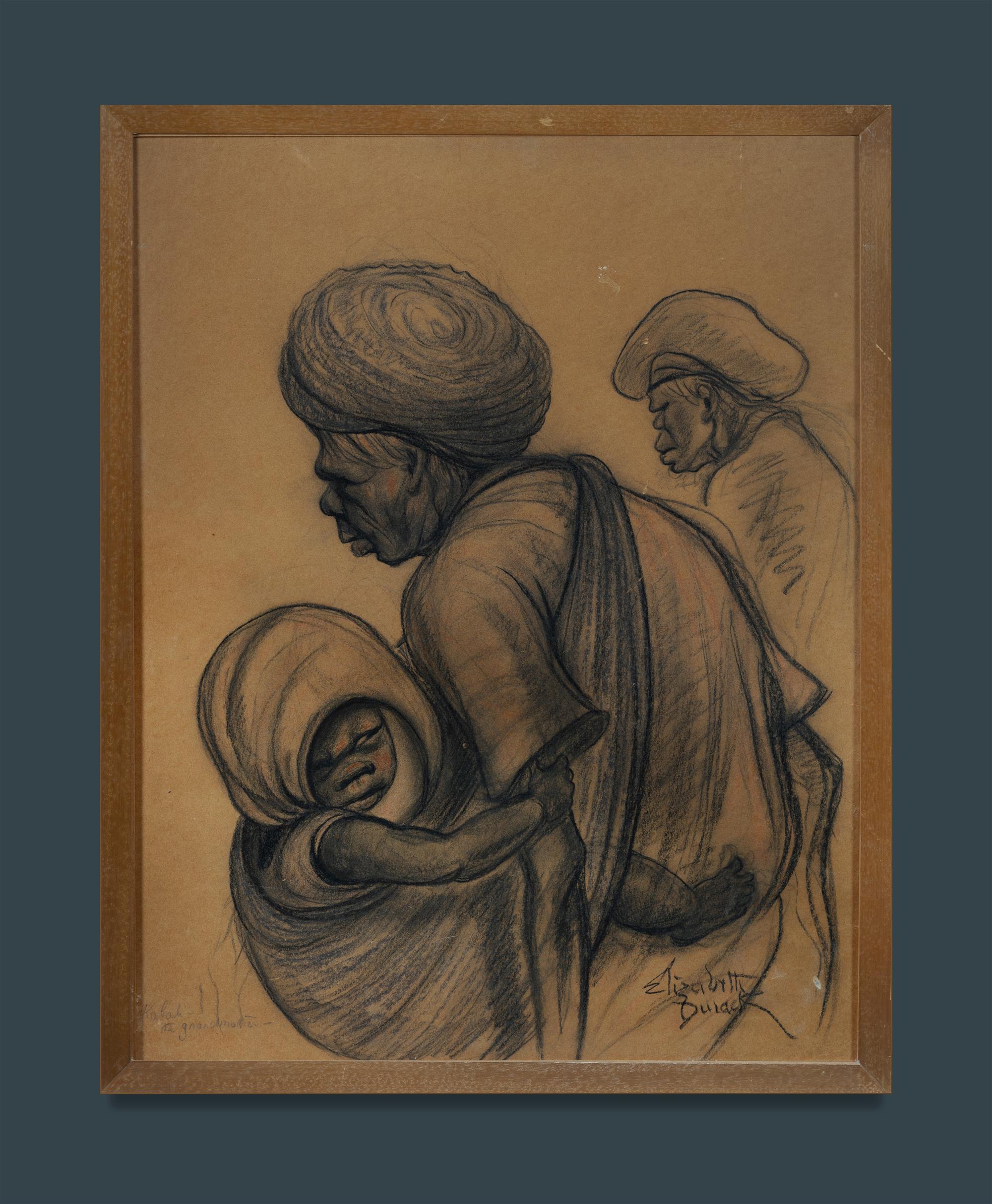 DURACK, Elizabeth (1915-2000) (2) 'Kabah the Grandmother,' signed lower right, (57x44cm); and 'Morning,' unsigned, (45x59.5cm). Mixed Media on Paper on Board (2)Estimate $300-500