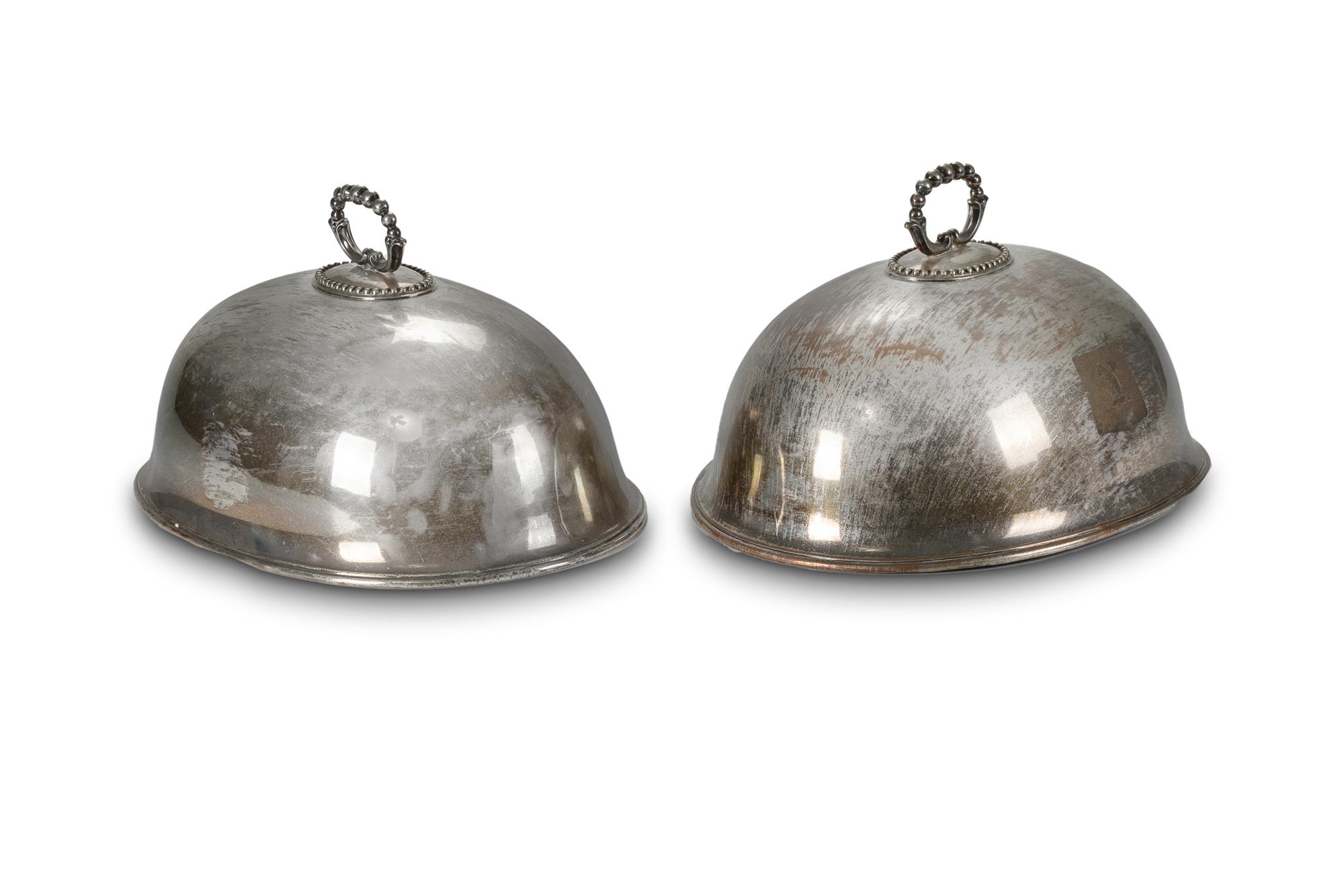 Fine Set of 3 Georgian Sheffield Plate Meat Covers. Each with engraved squirrel armorials. 49.5cm (1) 41.5cm (2)Estimate $100-300