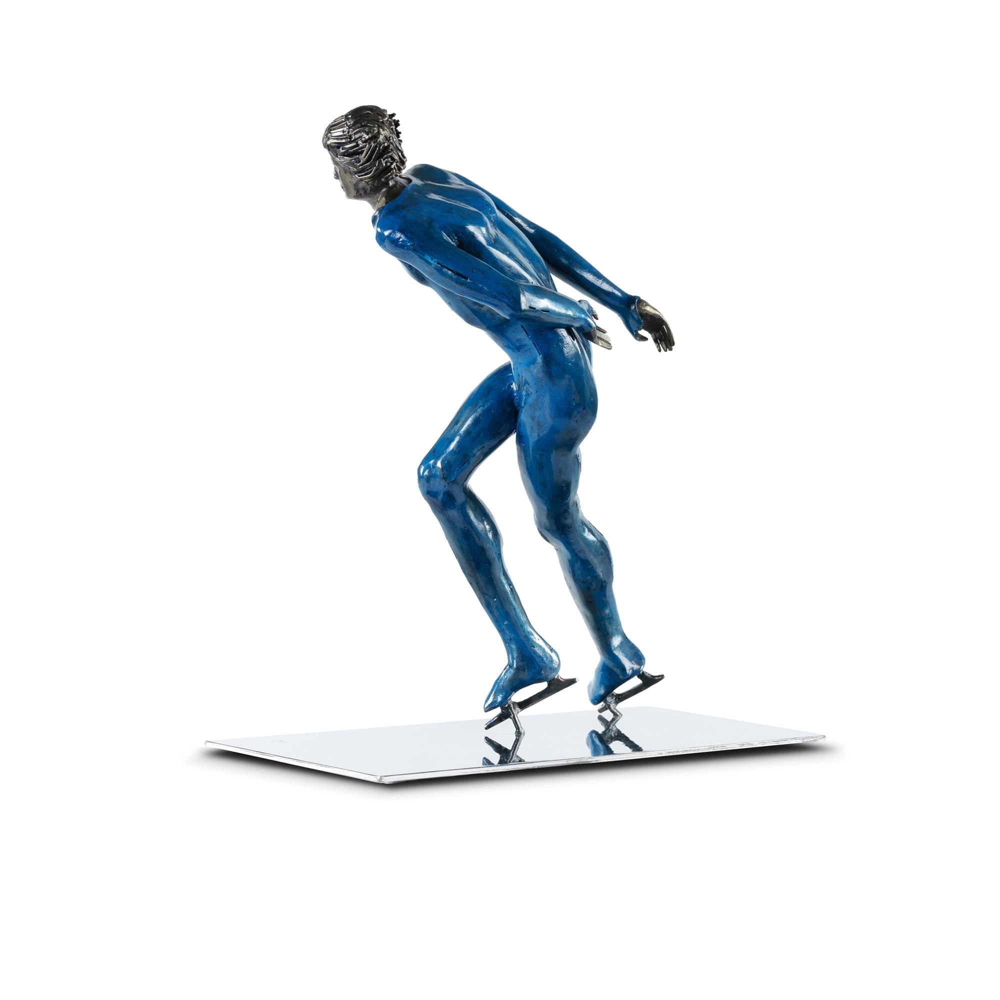 SEFFRIN, Nickolaus (German/Australian b.1931) 'Skater III' Initialled 'N' to base. Australian Galleries, Sydney, label to underside (#AG304170) Mild Steel, Chrome & Applied Blue Finish 59x54x26cm PROVENANCE: Adrien Seffrin, son of the artist.Estimate $1,200-2,500