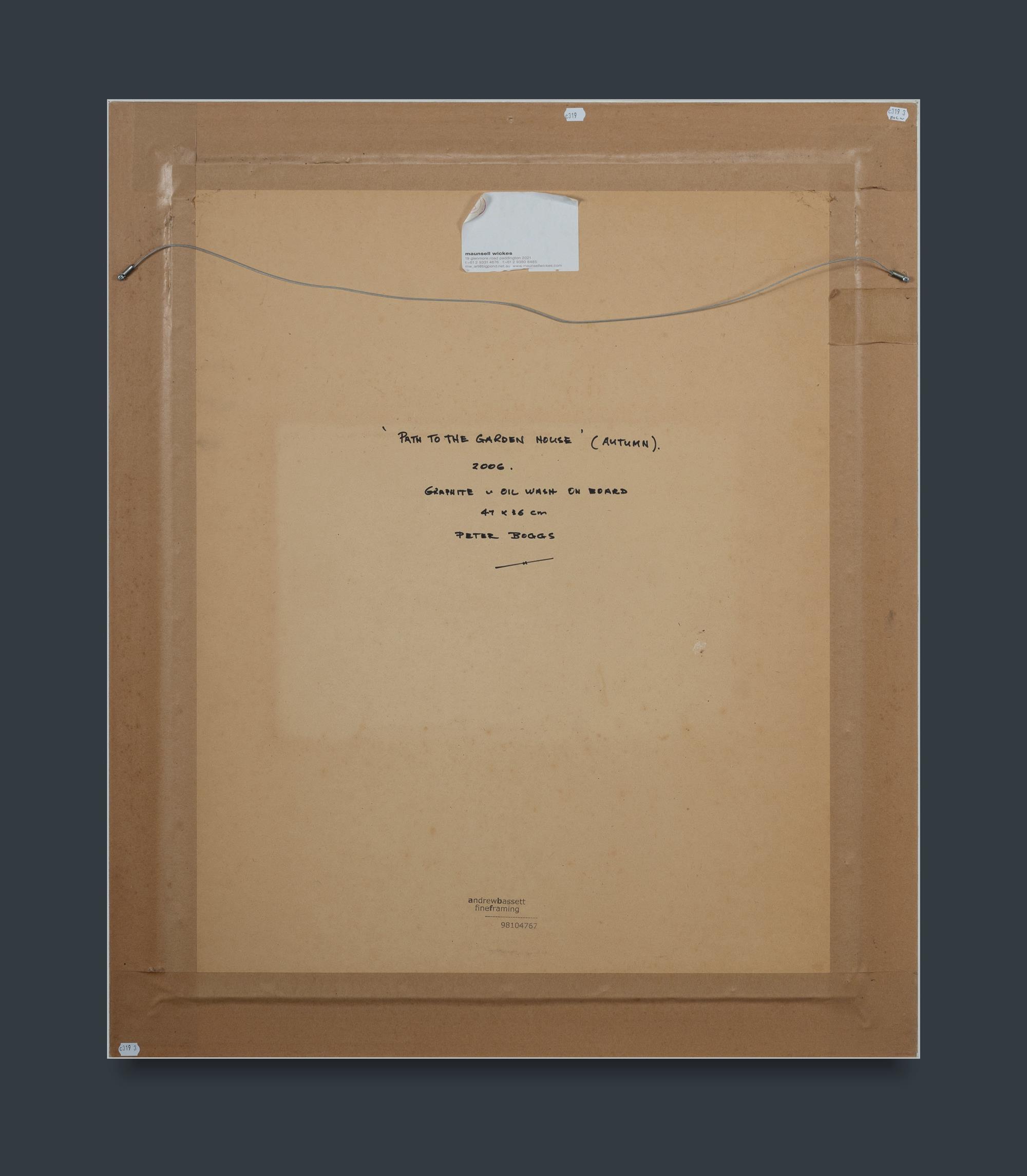 BOGGS, Peter (b.1949) 'Path to the Garden House (Autumn)' 2006. Titled and initialled to front; inscribed verso, and with label for Maunsell Wickes, Paddington, Sydney. Graphite & Oil Wash on Board 47x35.5cmEstimate $1,000-2,000