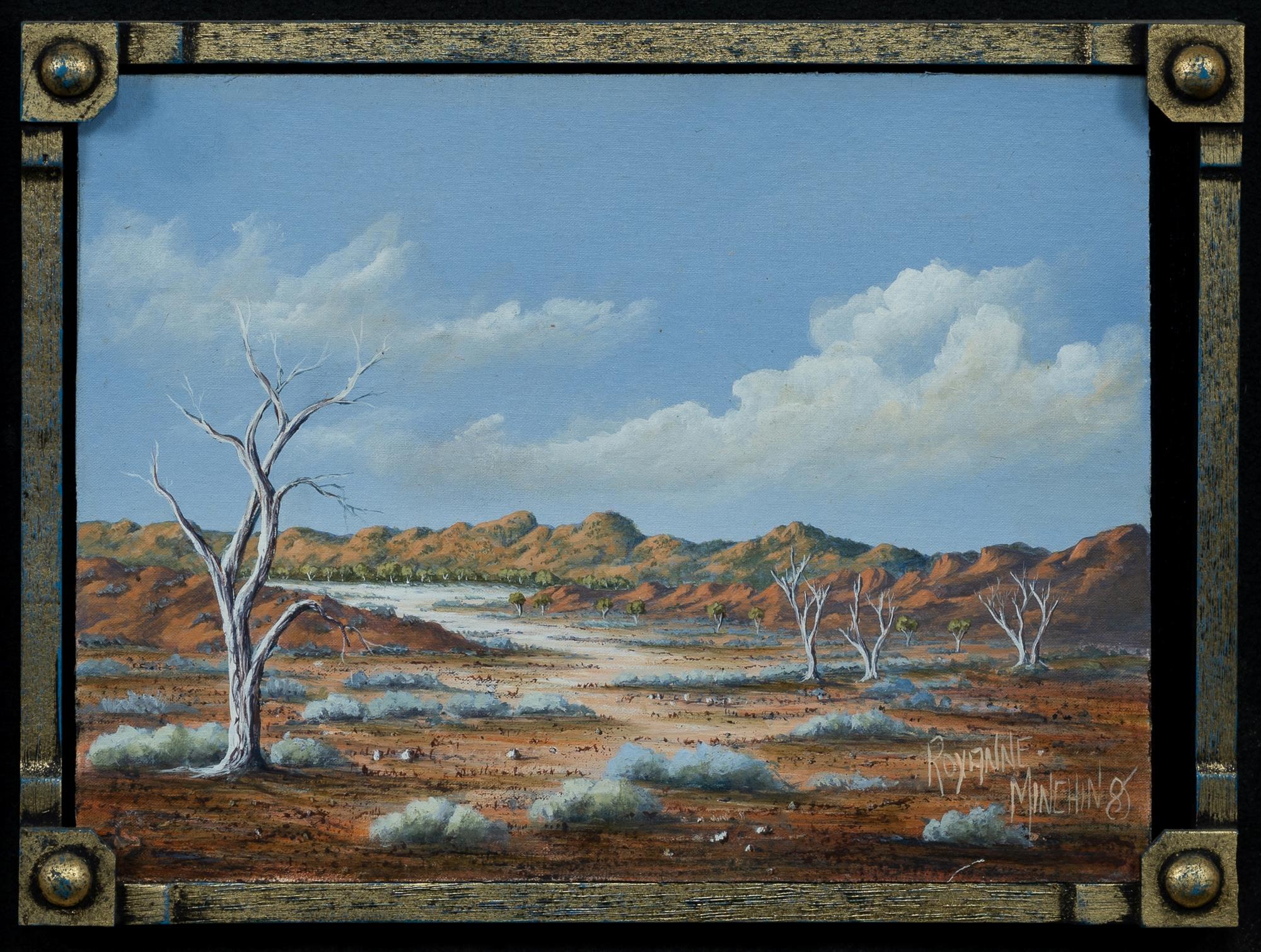 MINCHIN, Roxanne (b.1956) (2) 'Towards the Manna Hills, SA' and 'Near Yanco Glen [NSW]', both 1985. Acrylic on Board (2) 23x30.5cm (each)Estimate $400-600
