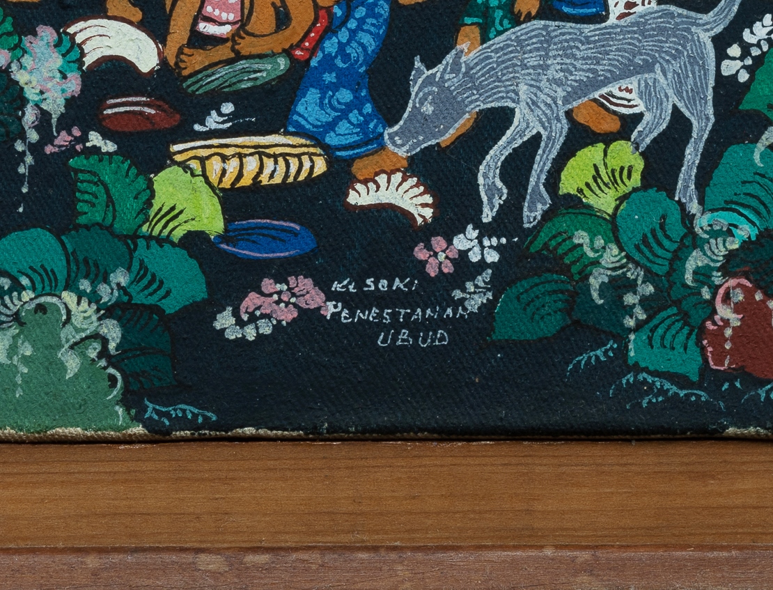 SOKI, Ketut (Balinese 1946-2022) 'Penestanan, Ubud' Acrylic on Canvas 56x35cm PROVENANCE: Collection John D. Chesterman, Sydney.Estimate $80-150