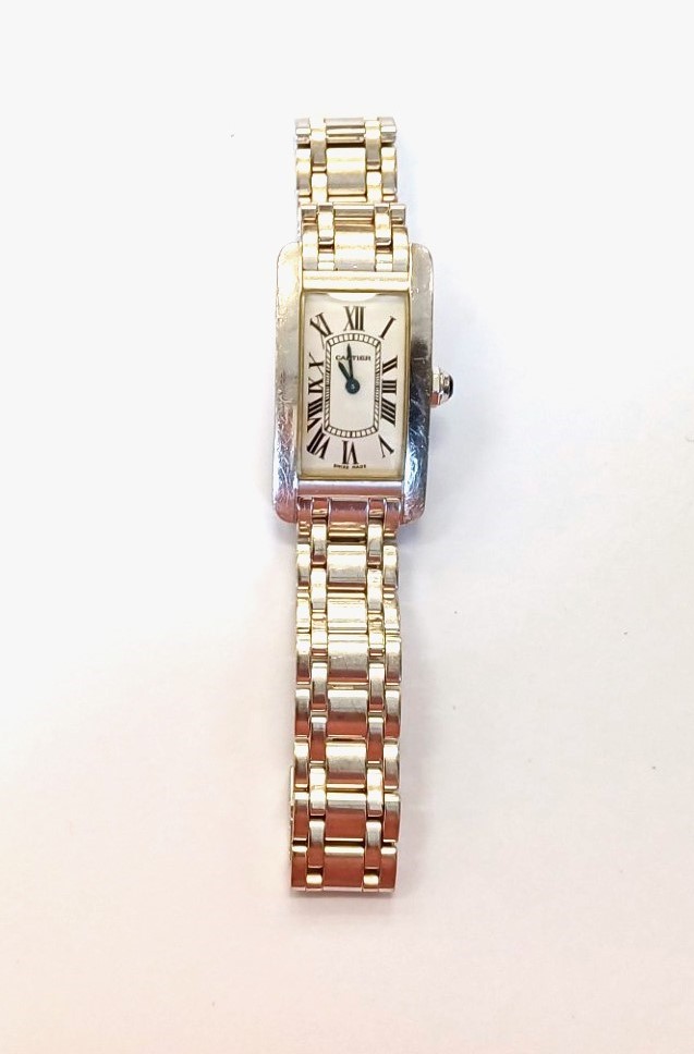 18ct White Gold Ladies Cartier Tank Americaine 18ct case and band Cartier Tank Américaine ladies wristwatch.Estimate $4,500-7,000