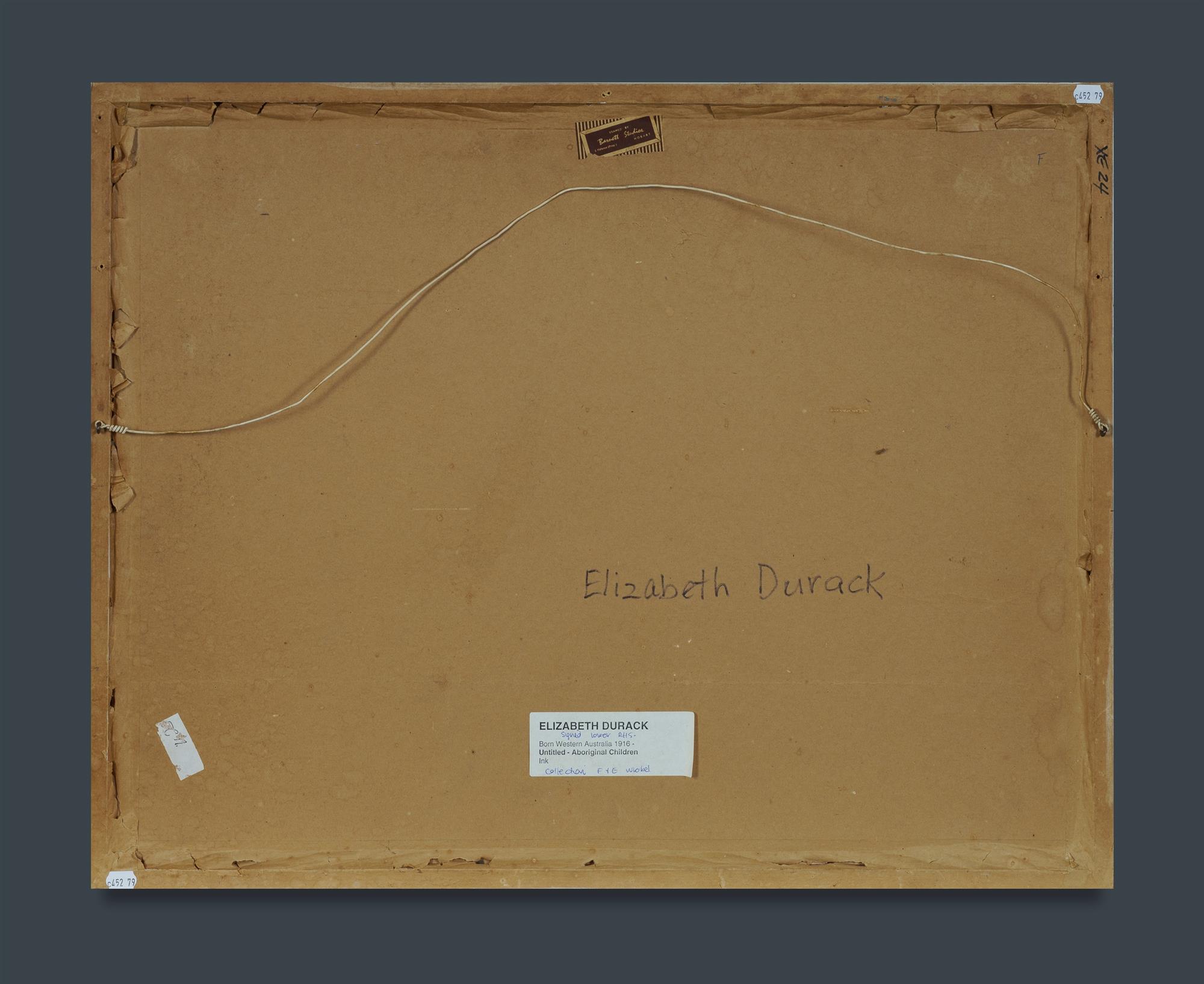 DURACK, Elizabeth (1915-2000) Untitled - Aboriginal Children Signed (faintly) lower right. Old label verso. Ink on Paper on Card 44x57cm PROVENANCE: The Fred and Elinor Wrobel Collection, Sydney; Estate Late Elinor Wrobel.Estimate $700-1,200