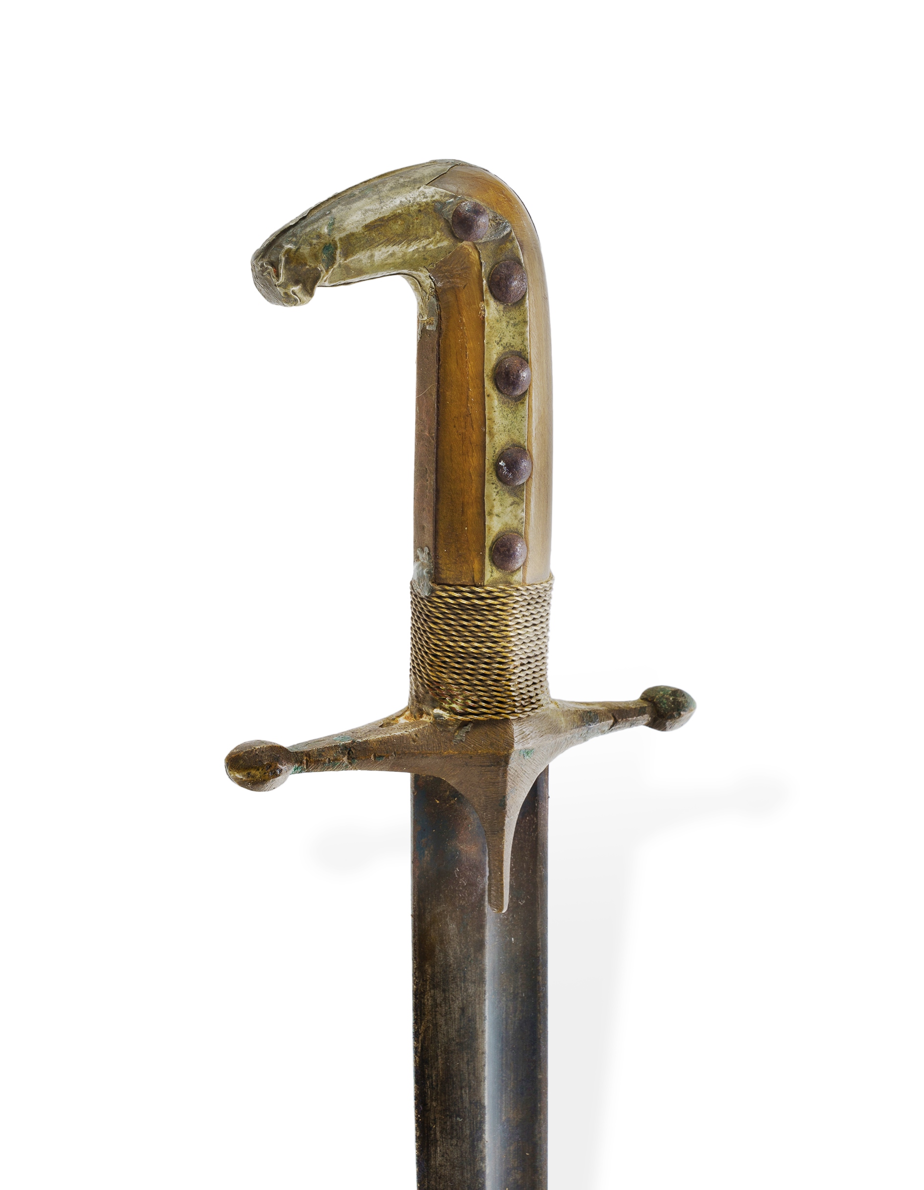 Shamshir Sword Sabre blade with single wide fuller; horn scale grips to hilt. L92cm (total)Estimate $400-700