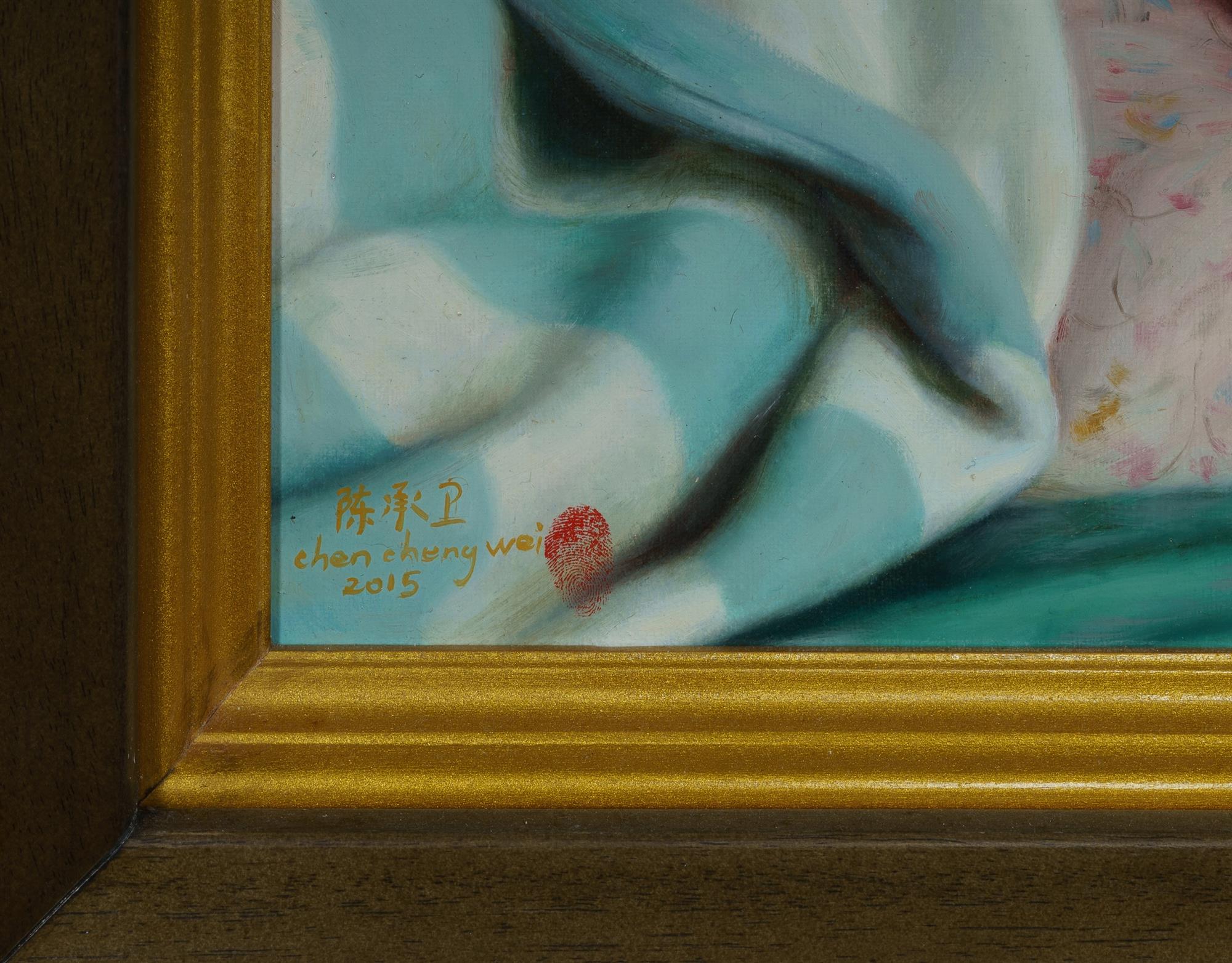 CHEN, Chengwei (Chinese b.1984) Nude, Back View, 2015. Signed and dated lower left including thumbprint. Oil on Canvas 70x50cm PROVENANCE: The artist; private collection, China and Sydney (purchased directly from the above); thence by descent (deceased estate)Estimate $3,000-5,000