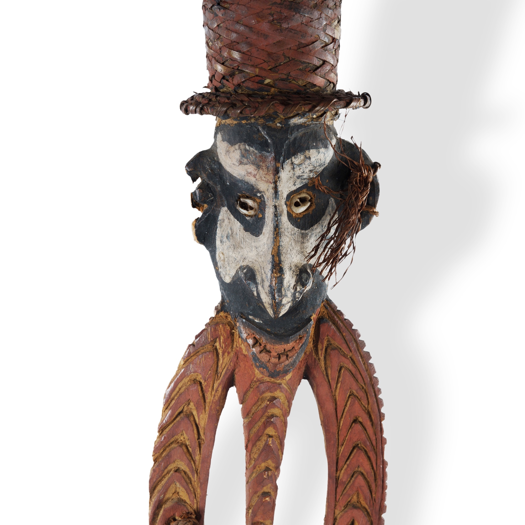 Ceremonial Lime Container - Finial Early 20th C Iatmul people, Middle Sepik. Carved wood, rattan and bamboo. (L73.5cm) PROVENANCE: Deceased Estate, Melbourne.Estimate $800-1,500
