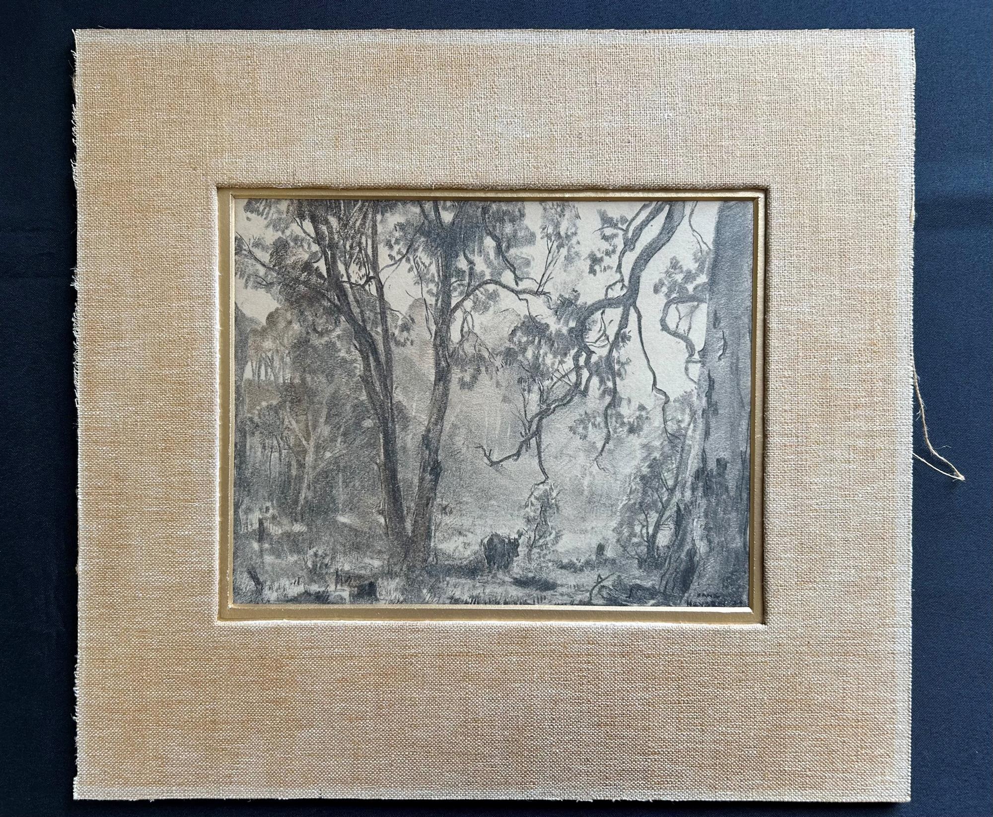 HEYSEN, Hans (1877-1968) Cow in Glade, 1924 (?) Signed lower right, and dated indistinctly Graphite & Pastel on Card 20.5x26cmEstimate $2,000-4,000