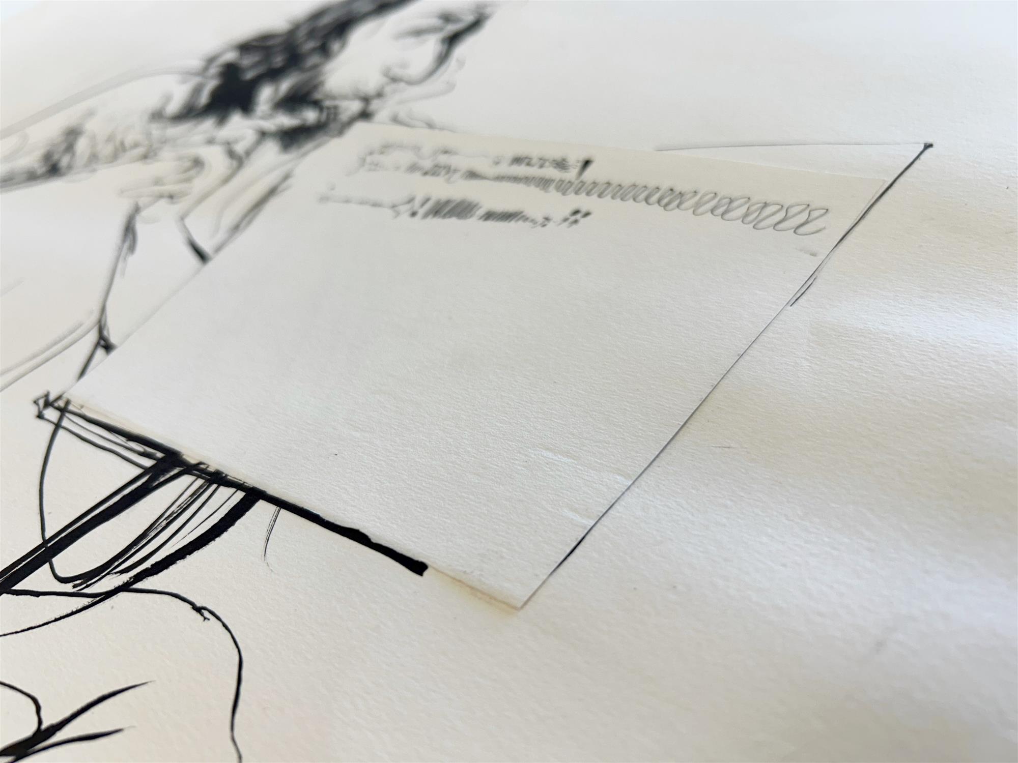 WHITELEY, Brett (1939-1992) 'Joel Elenberg Playing the Flute,' c.1975/6. Unsigned Ink on Paper with Collage 65x49cm (sight) 66x50cm (sheet) PROVENANCE: Christie's, Melbourne, November 25th 1997 (lot 201); Ken Hinds Cultural Heritage Collection, Qld. EXHIBITIONS: Caloundra Regional Art Gallery, 'Privately Collecting, Ken Hinds Cultural Heritage Collection,' Feb - Mar 2006 (catalogue included) LITERATURE: Sutherland, K., Brett Whiteley: Catalogue Raisonné, Schwartz Publishing, Melbourne, 2020, vol.7, p.320 (referenced in cat. 27.75) OTHER NOTES: © Wendy Whiteley/Copyright Agency, 2025.Estimate $45,000-65,000