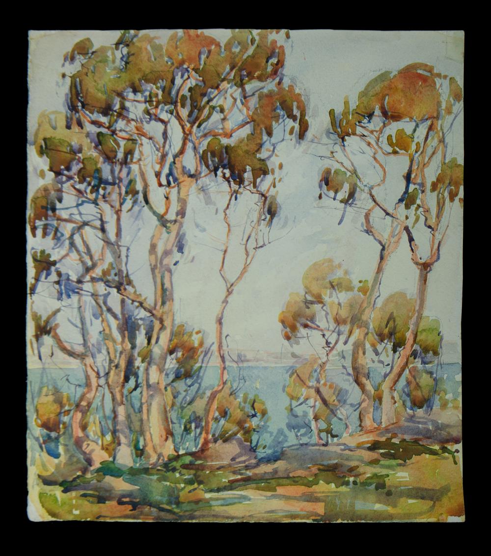COGHLAN, Elaine (1897-1989) (3) Sydney Harbour Glimpsed Through the Trees (unsigned) (28.5x25.5cm); 'Middle Harbour' (16x30.5cm); & 'Boats from Cremorne Point' (12x15.5cm) W/Clr (3) Provenance: Angeloro family collection. Estimate $200-400