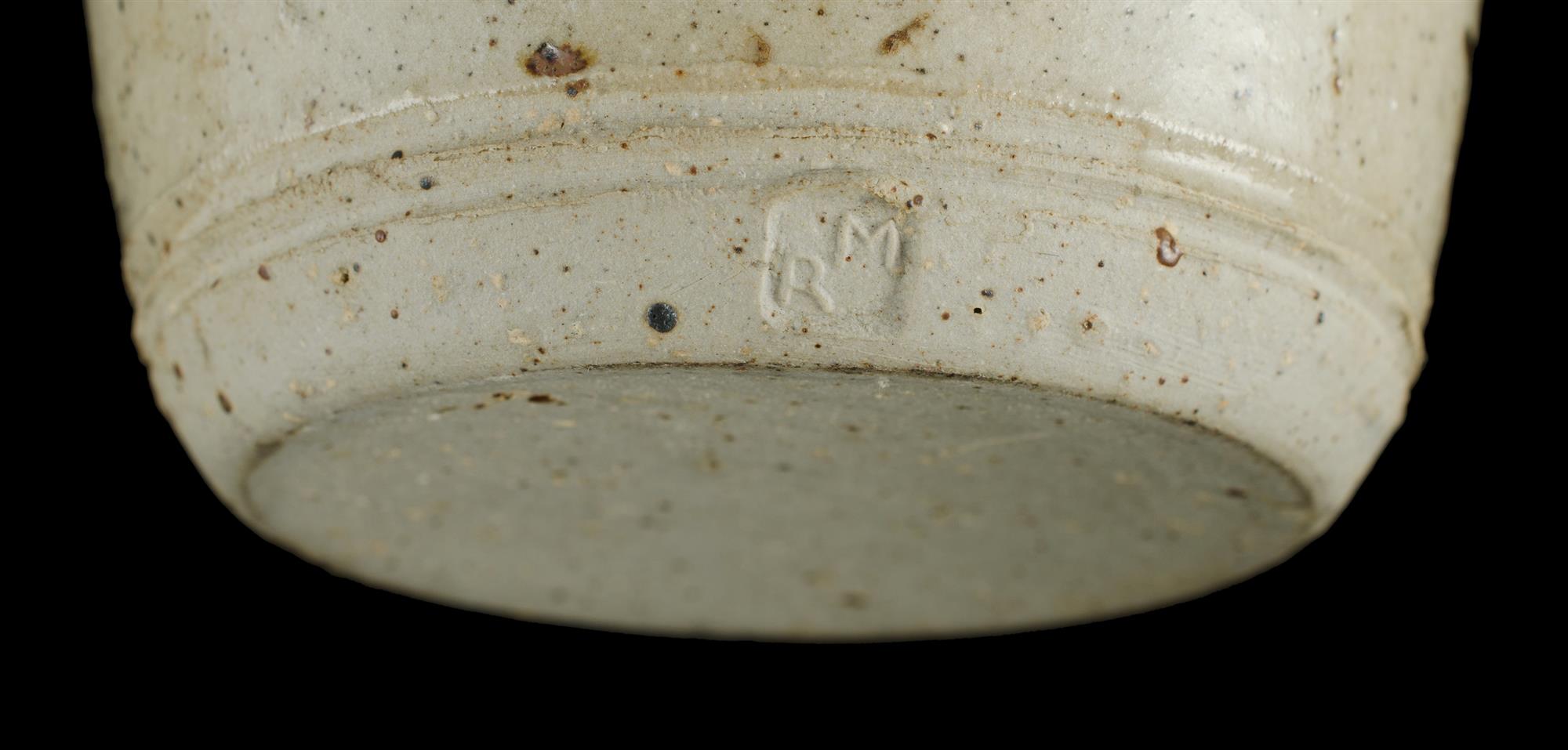 Robert Mair Stoneware Saki Bottle. With six matching cups. Impressed 'RM' studio mark to foot. H18cm (bottle)Estimate $50-100