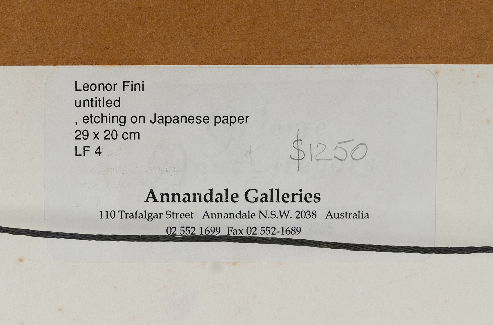FINI, Leonor (Argentinian 1907-1996) 'Untitled' Annandale Galleries, Sydney, label verso. Etching 36/55 29x20cm (plate) 62x52cm (frame)Estimate $100-200