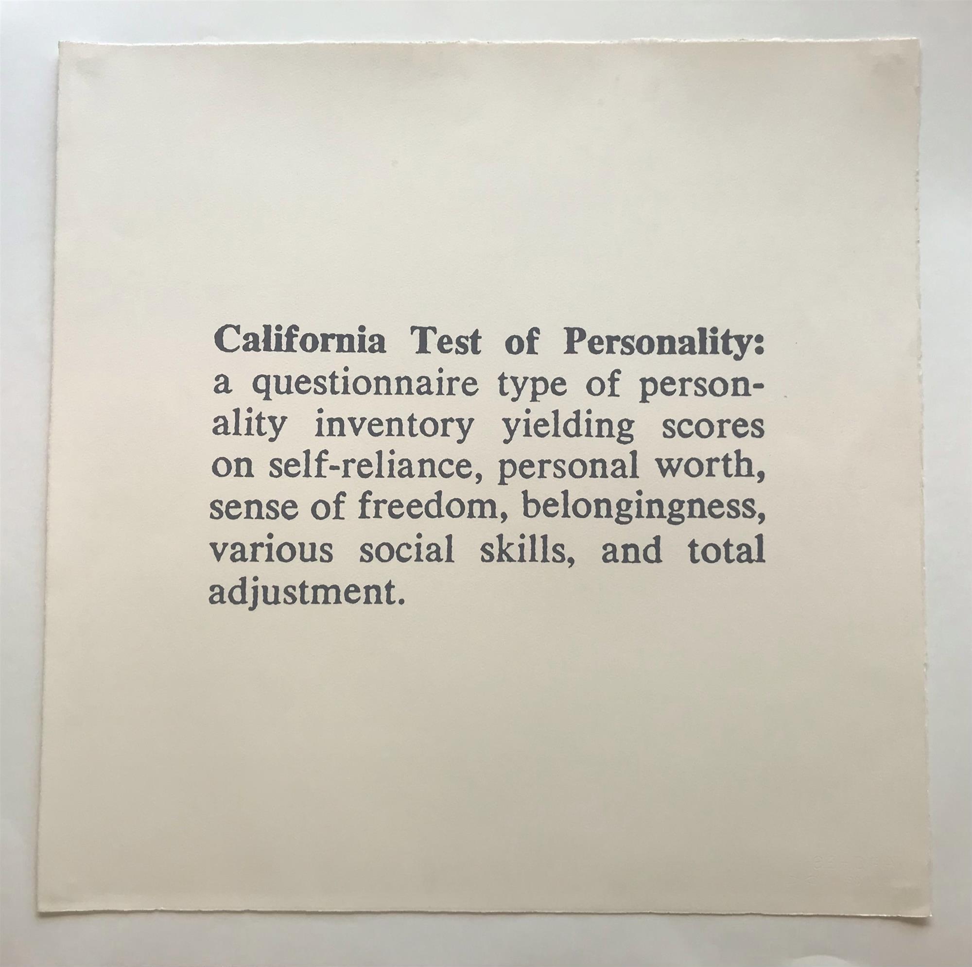 GIBSON, Jeff (b.1958) 'California Test of Personality,' 1992. Accompanying text sheet. Signed & dated verso, and with exhibition label. Oil on Canvas 61x61cmEstimate $150-250