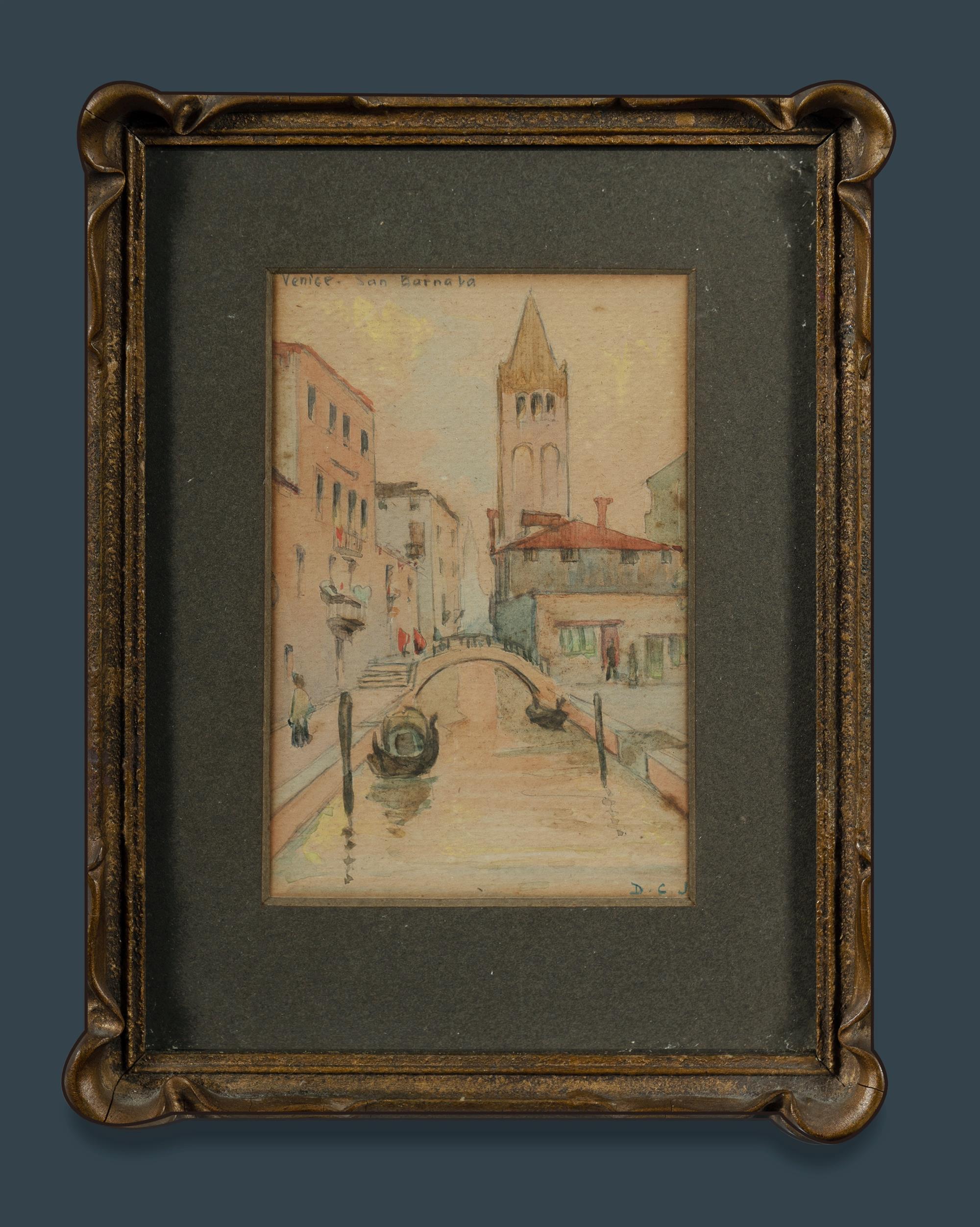 Australian School (2), Agnes Beatrice CHETTLE (1867-1959), Cloudy Mountain Peaks (20x30cm); & Dora Carmen JARRETT (1895-1983), 'Venice - San Barnaba,' (13.5x9cm). Both works signed with initials lower right. W/Clr (2)Estimate $50-120