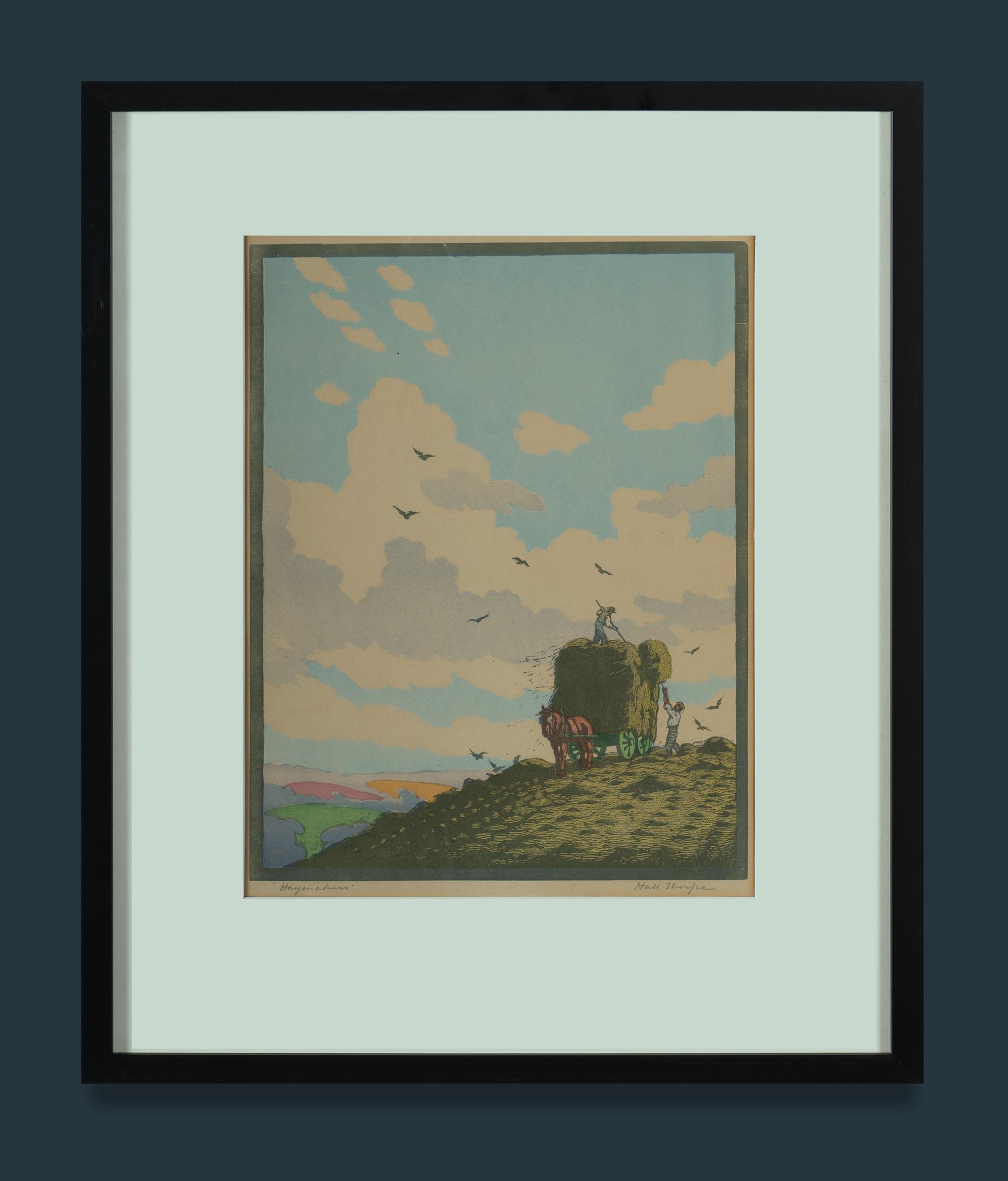 THORPE, John Hall (1874-1947) (2) 'Haymakers,' 34x26.5cm (image), signed & titled; & 'The Open Gate,' 35x28cm (image), no signature apparent. Colour Woodblock (2)Estimate $600-900